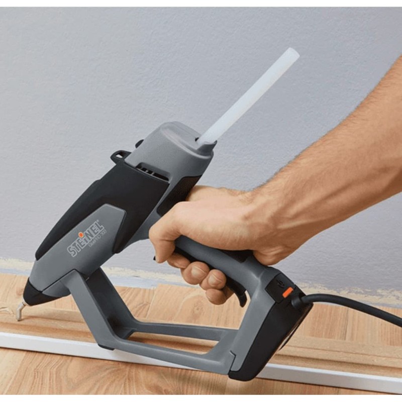 Heißklebepistolen sind unverzichtbare Werkzeuge in Industrie und Handwerk. Gerade bei professionellen Anwendungen sind Faktoren wie Qualität, Zuverlässigkeit und Ergonomie entscheidend. Das Modell GluePRO 300 erfüllt diese Standards. Die robuste Heißklebepistole wurde so konzipiert, dass sie ein einfaches und angenehmes Arbeiten gewährleistet. Sie hält auch langwierigen und anspruchsvollen Aufgaben stand. Das Werkzeug wird mit einem praktischen Koffer geliefert.