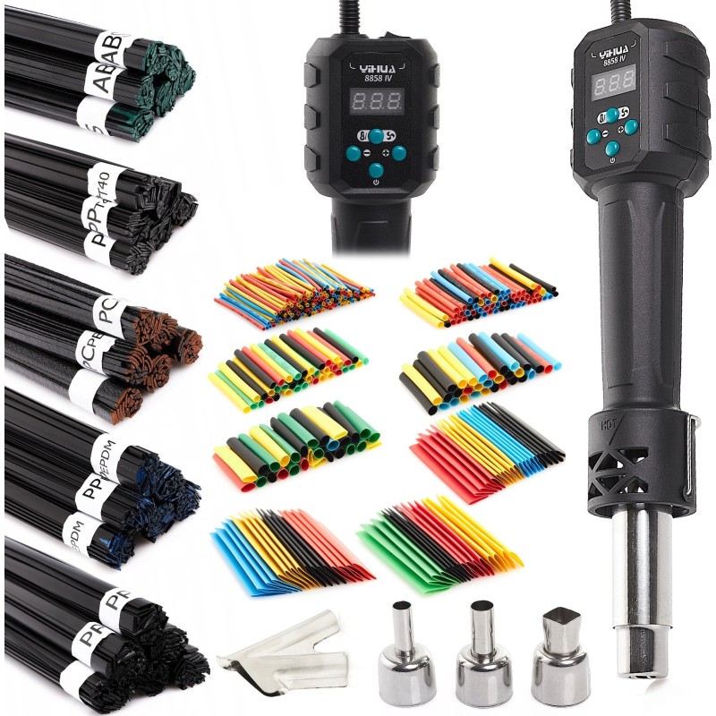 Heißluftlötkolben Yihua 8858-IV + 328 Stück Schrumpfschläuche + Schuhdüse + 5 Arten von Klebstoffen