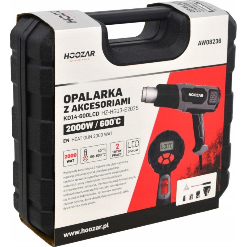 Hoozar Heißluftpistole HOOZAR 2000 W mit Leistungsregelung und Zubehör, LCD-Display