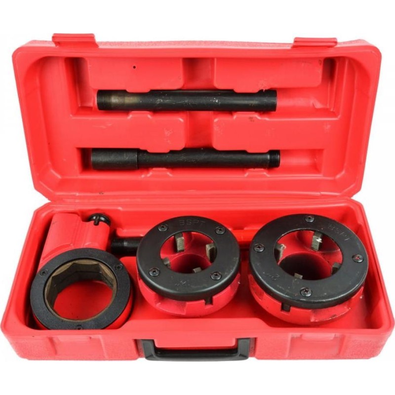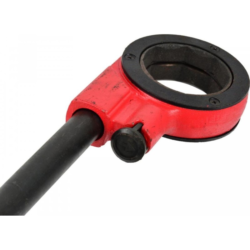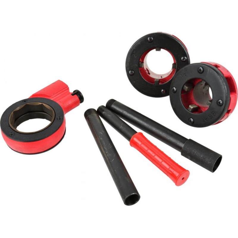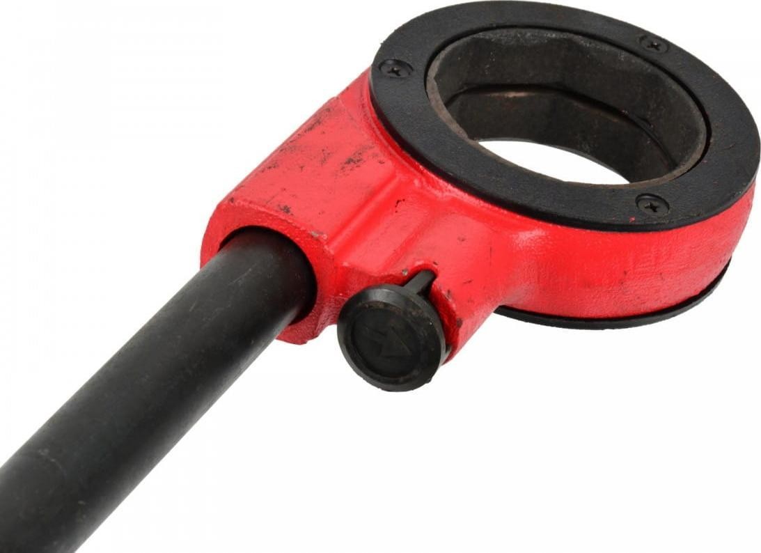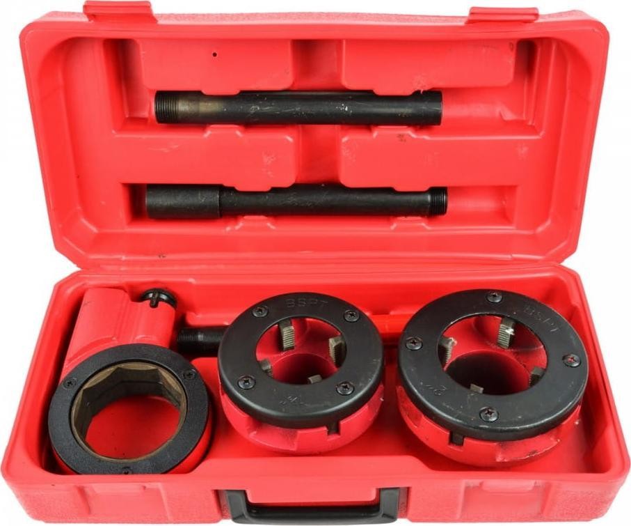 Hydraulische Rohrgewindeschneidmaschine, 2-teilig, Gewindeschneidbacken 1,1/2" und 2" Hydraulische Rohrgewindeschneidmaschine im Set mit 2 Gewindeschneidbacken. Das Gerät dient zum Gewindeschneiden von Rohren und Formstücken. Es findet sowohl bei Renovierungsarbeiten als auch auf der Baustelle Anwendung. Die Gewindeschneidezähne bestehen aus CrV-Legierungsstahl mit einer Härte von HRC 58–62. Gusseisernes Gehäuse der Gewindeschneidbacken. Produktmerkmale: zum Gewindeschneiden von Rohren und Formstücken Messer aus Chrom-Vanadium-Legierungsstahl mit einer Härte von HRC 58–62 robuste Gusseisenkonstruktion 2 Gewindeschneidbacken im Set Griff mit Verlängerung