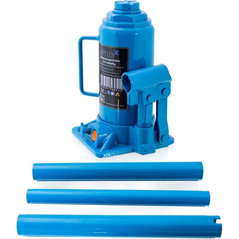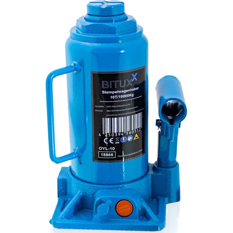 Der professionelle Hydraulikheber BITUXX zeichnet sich durch eine einfache Konstruktion und kompakte Abmessungen aus, was für Lagerung und Transport von entscheidender Bedeutung ist. Die Tragkraft des Hebers beträgt 10 Tonnen, der Hubbereich reicht von 205 mm bis 335 mm. Der Heber eignet sich für Werkstätten, Transportunternehmen und Ihre Garage.