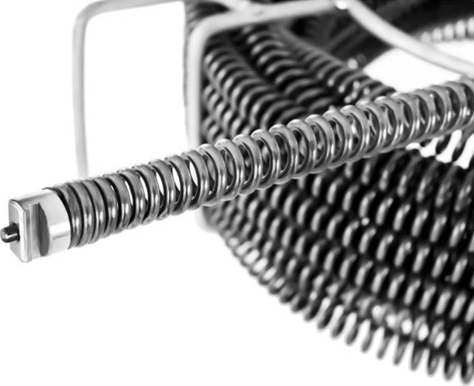 Die hydraulische Spirale MSW-CABLE SET 1 ist ein Zubehörteil für elektrische Rohrreinigungsgeräte. Dieses Gerät ist sowohl für Wasser- und Abwasserunternehmen, Wasserversorgungsbetriebe, Rettungsdienste, Produktionsbetriebe als auch für Privatpersonen bestimmt. Dieses Produkt eignet sich zum Reinigen, Durchspülen und Entstopfen von Rohren und Abwasserkanälen. Das Set enthält 6 Hydraulikfedern (2,45 m), die miteinander verbunden werden können. Auf diese Weise entsteht eine Spirale mit einer Länge von bis zu 14,7 m. Dank der standardisierten Endstücke lässt sich das Produkt auch mit Werkzeugen anderer Marken verwenden.