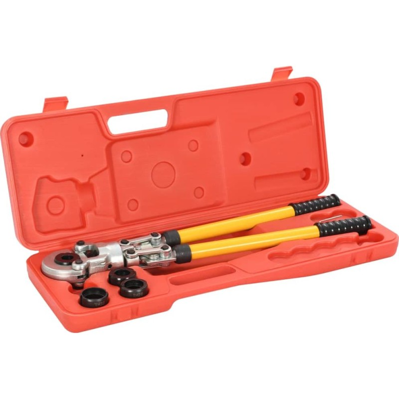 Die aus Stahl gefertigten Presszangen sind äußerst langlebig. Der ergonomisch geformte Griff liegt bequem in der Hand. Das Werkzeug eignet sich für Rohre mit einem Durchmesser von 16 bis 32 mm. Dank des um 360° drehbaren Kopfes können Sie die Zange in nur wenigen Sekunden an Ihre Anforderungen anpassen. Darüber hinaus sind die ausziehbaren Hebelarme so konstruiert, dass sie eine optimale Kraftübertragung gewährleisten.