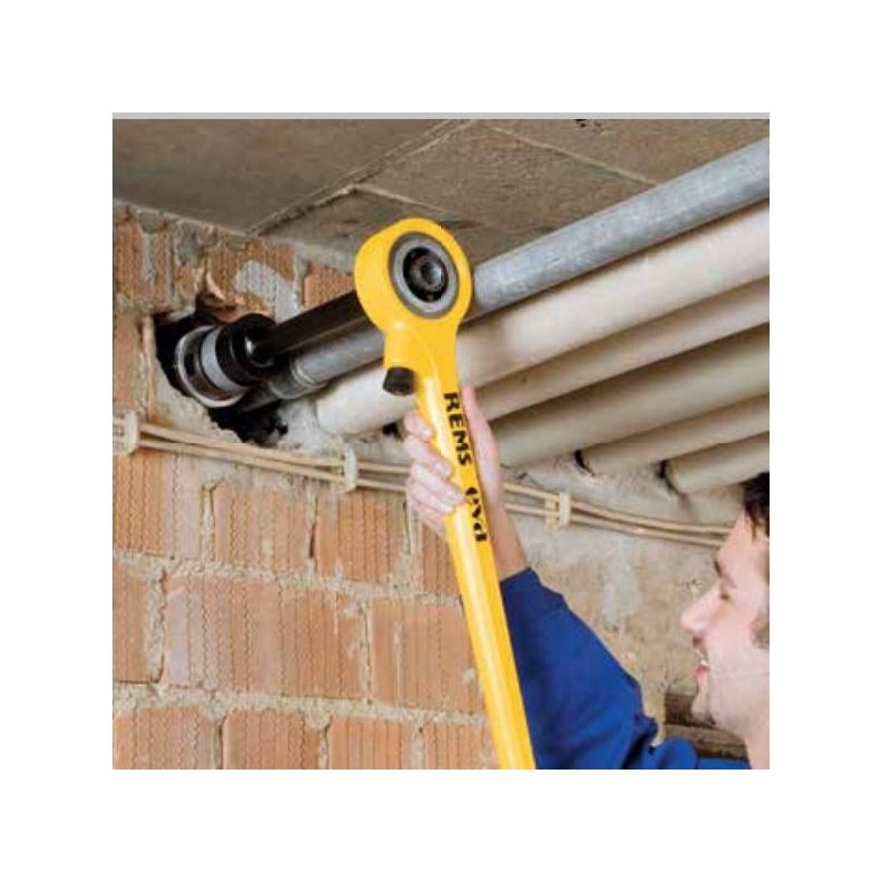 - Zum Gewindeschneiden an schwer zugänglichen Stellen, z. B. in Mauerwerksvertiefungen, feststehenden Rohren, Schächten. Ideal für Reparaturen und Sanierungen.