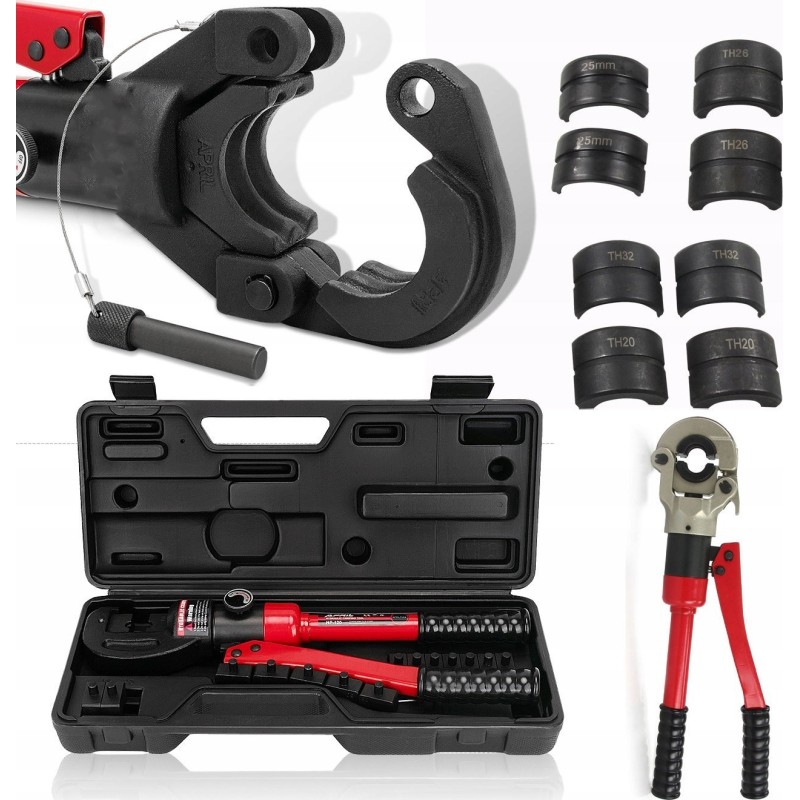 ✔️ Je nach Größe der PEX-Rohre sind die hydraulischen Presswerkzeuge mit entsprechenden Formstücken (Matrizen) ausgestattet, die ein präzises und festes Verpressen von Rohren mit unterschiedlichen Durchmessern ermöglichen. Mit diesem Werkzeug lassen sich professionelle Installationen in Gebäuden, Wohnhäusern sowie in industriellen Anlagen durchführen.