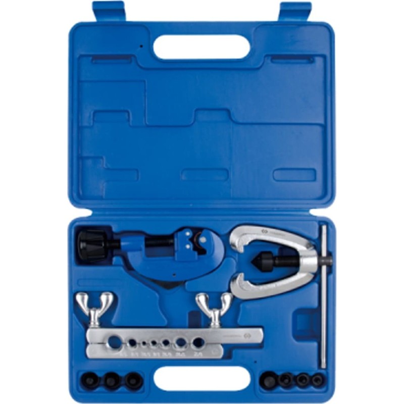 Für Kupfer-, Aluminium- und Messingrohre mit einer Wandstärke von bis zu 1 mm in Klima-, Heizungs- und Bremsanlagen. Im Lieferumfang enthalten: - Rohrschneider für Rohre von 3–30 mm - Klemmblock mit Bohrungen: 3/16", 1/4", 5/16", 3/8", 7/16", 1/2", 5/8" - Rohrpresse - Adapter: 3/16", 1/4", 5/16", 3/8", 7/16", 1/2", 5/8" Produktdatenblatt – 7CA0110S