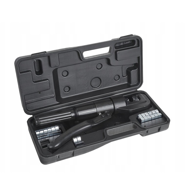 - Lieferumfang: Hydraulische Kabelpresse, 14 austauschbare Pressmatrizen, Satz O-Ring-Dichtungen, Transportkoffer