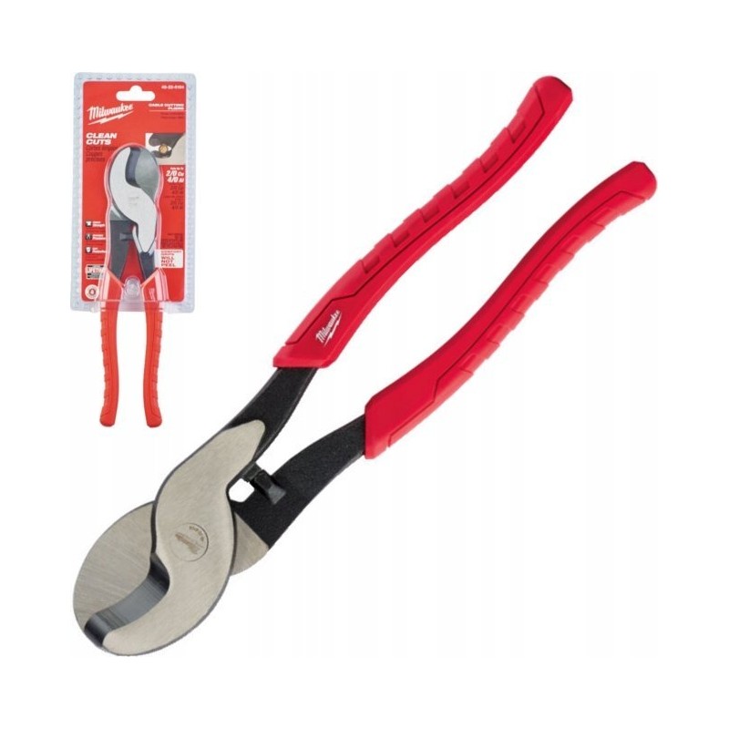 Die Vorteile eines Produkts der renommierten Marke Milwaukee liegen auf der Hand. Kabelschneider für Kupfer- und Aluminiumkabel mit einer Länge von 240 mm. Die gehärteten Backen schneiden Kabel mit einem Durchmesser von bis zu 12 mm.