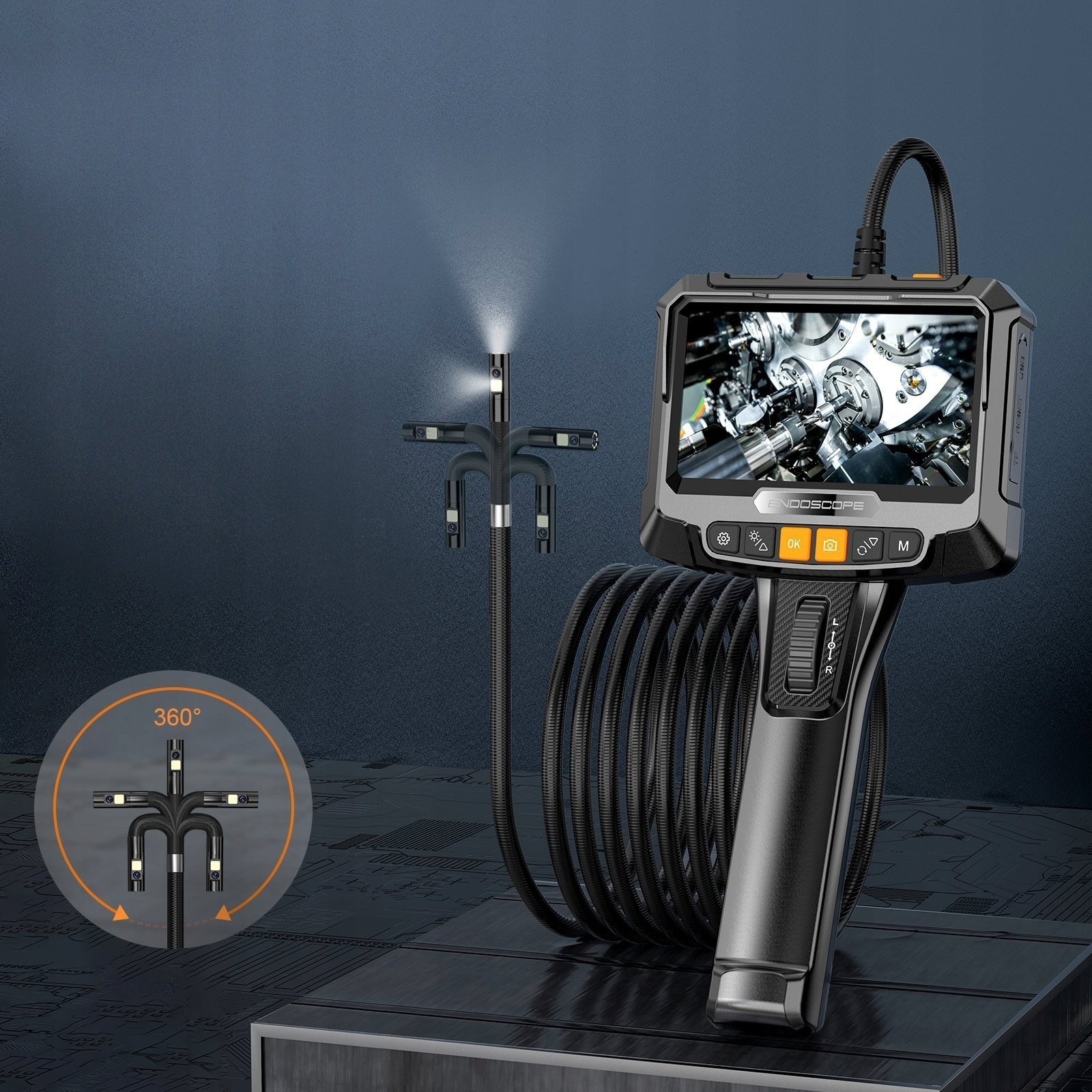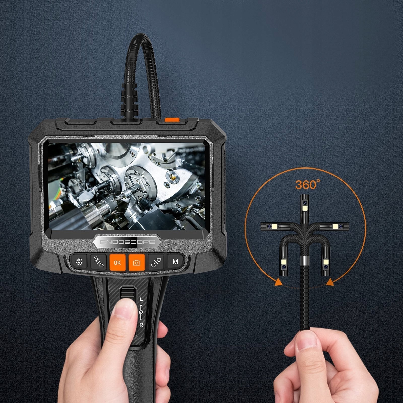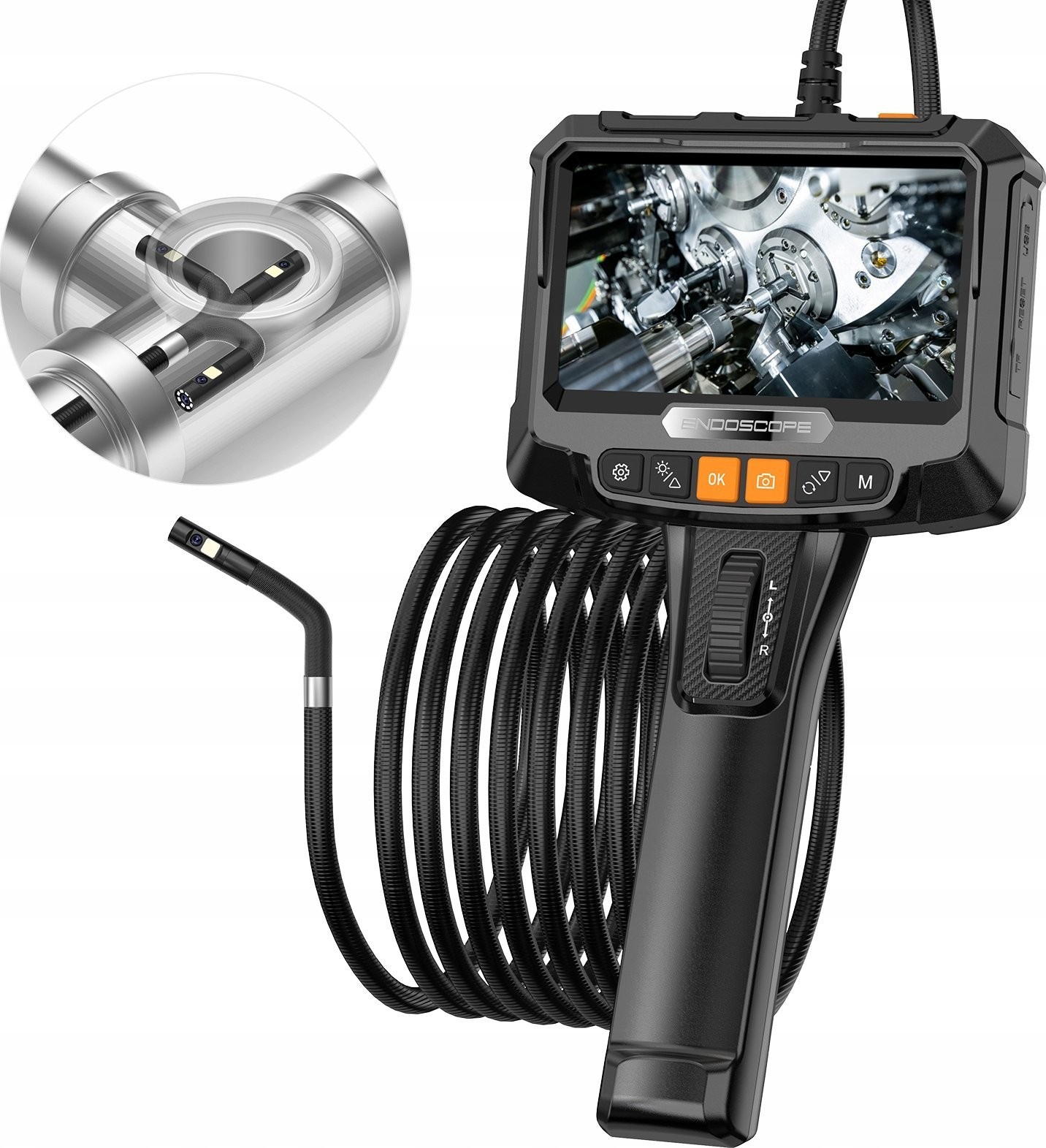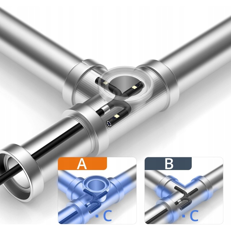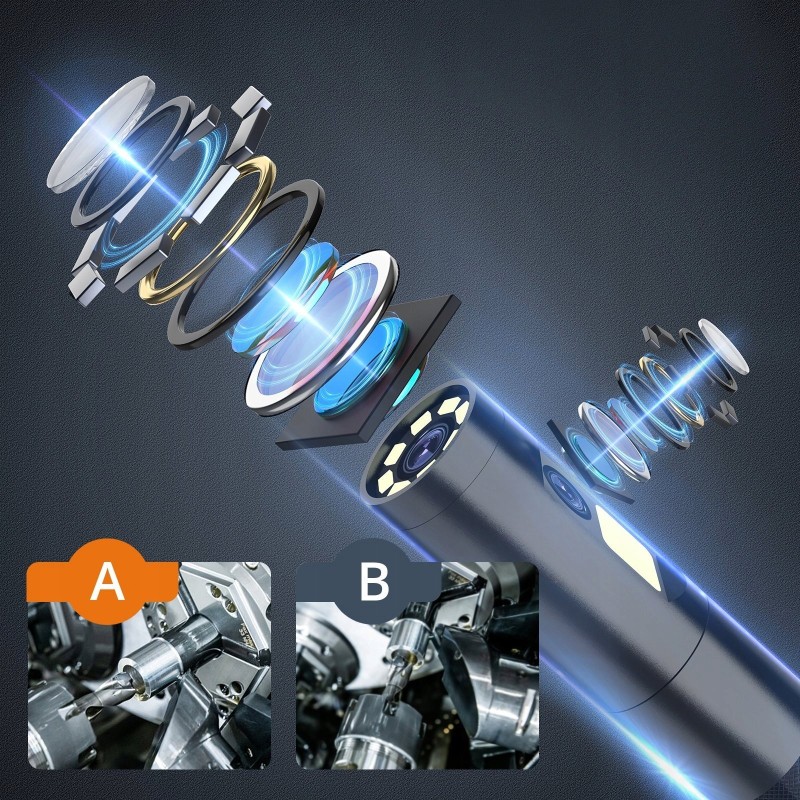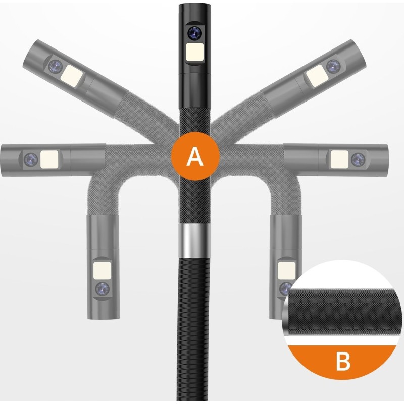Dank des drehbaren Kopfes bietet die Kamera ein vollständiges 360°-Sichtfeld, was eine präzise Betrachtung und Inspektion selbst in den kompliziertesten Bereichen ermöglicht. Sie können den Blickwinkel ganz einfach an Ihre Bedürfnisse anpassen, was die Arbeit erheblich erleichtert.