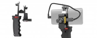 - Handhalterung mit Befestigung für Smartphone und Kamera