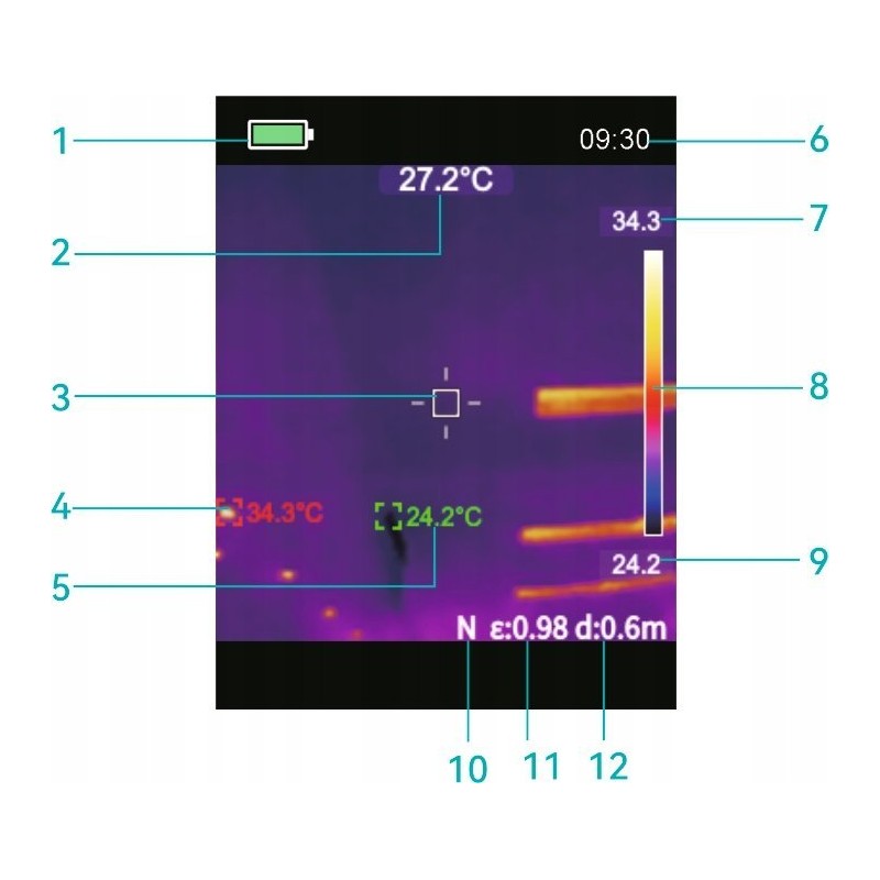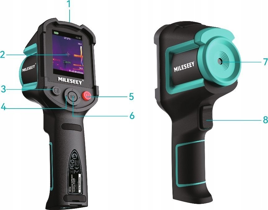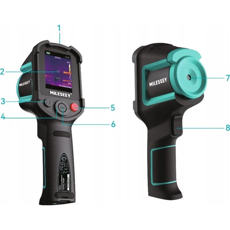 Die Kamera ist mit einem großen 2,8-Zoll-LCD-Bildschirm ausgestattet, der dank einer Auflösung von 192 x 192 Pixeln eine hervorragende Bildqualität bietet. Dies ermöglicht eine bequeme Anzeige der Messergebnisse sowie das Speichern von Bildern auf der mitgelieferten Micro-SD-Karte.