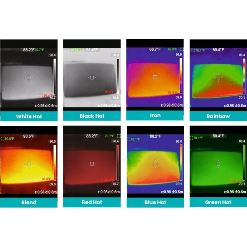 Die Kamera bietet acht verschiedene Farbpaletten, wodurch die angezeigten Daten an individuelle Bedürfnisse angepasst werden können. Dies erleichtert die Analyse und Interpretation der Messergebnisse.