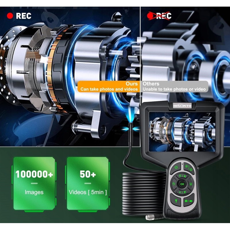 - ✅Großes Display: Unsere professionelle Endoskopkamera ES520 ist mit einem großen 5-Zoll-IPS-Bildschirm ausgestattet, der eine hohe Bildqualität und flüssige Wiedergabe bietet. Das Display verfügt über eine 3-fache Vergrößerung und eine Umkehrfunktion, sodass Sie Videos und Bilder direkt aufnehmen und ansehen können, ohne Software herunterladen oder eine WLAN-Verbindung herstellen zu müssen.