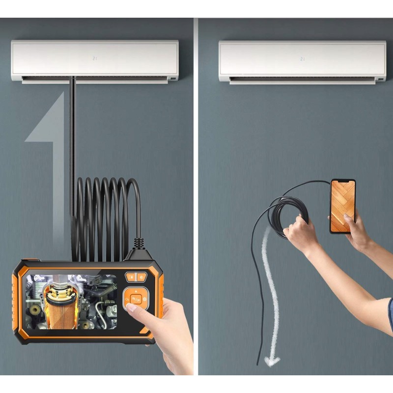 Wir präsentieren Ihnen ein Endoskop der neuesten Generation mit eigenem Bildschirm, auf dem das Kamerabild angezeigt wird! Das Produkt erfordert keine Installation spezieller Anwendungen. Nach dem Einschalten ist es sofort einsatzbereit. Das Gerät spart Ihnen Zeit und Nerven bei der Arbeit!