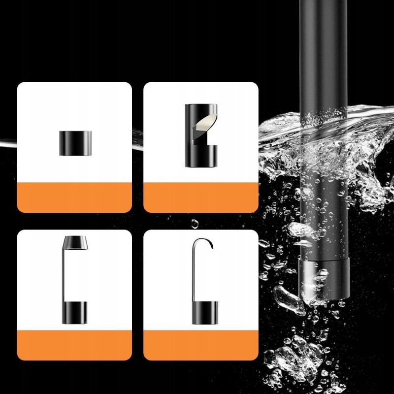 Die starre und biegsame Struktur ermöglicht es, das Endoskopkabel in jeden beliebigen Winkel zu biegen. Dadurch lässt sich die Kamera mühelos auch an hohen, schwer zugänglichen Stellen einsetzen. Die Schutzart IP67 bedeutet, dass das Gerät auch an Orten mit hoher Luftfeuchtigkeit verwendet werden kann.