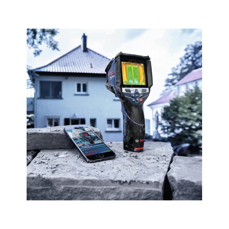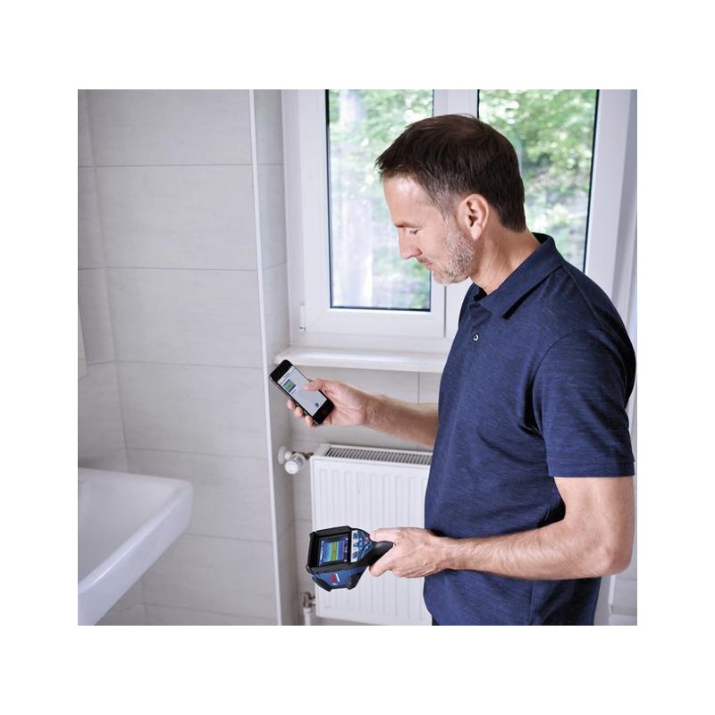 Sofortige Visualisierung von Temperaturunterschieden und einfache Dokumentation der Ergebnisse – laden Sie einfach die kostenlose BOSCH Thermal-App herunter, mit der Sie die Messergebnisse speichern und versenden können. Anschließend können Sie diese Ihrem Kunden auf einem größeren Bildschirm zeigen, bestimmte Bildbereiche hervorheben oder entsprechende Kommentare hinzufügen und das Wärmebild per E-Mail versenden, um die erforderlichen Arbeiten festzulegen oder bestimmte Maßnahmen zu ergreifen.