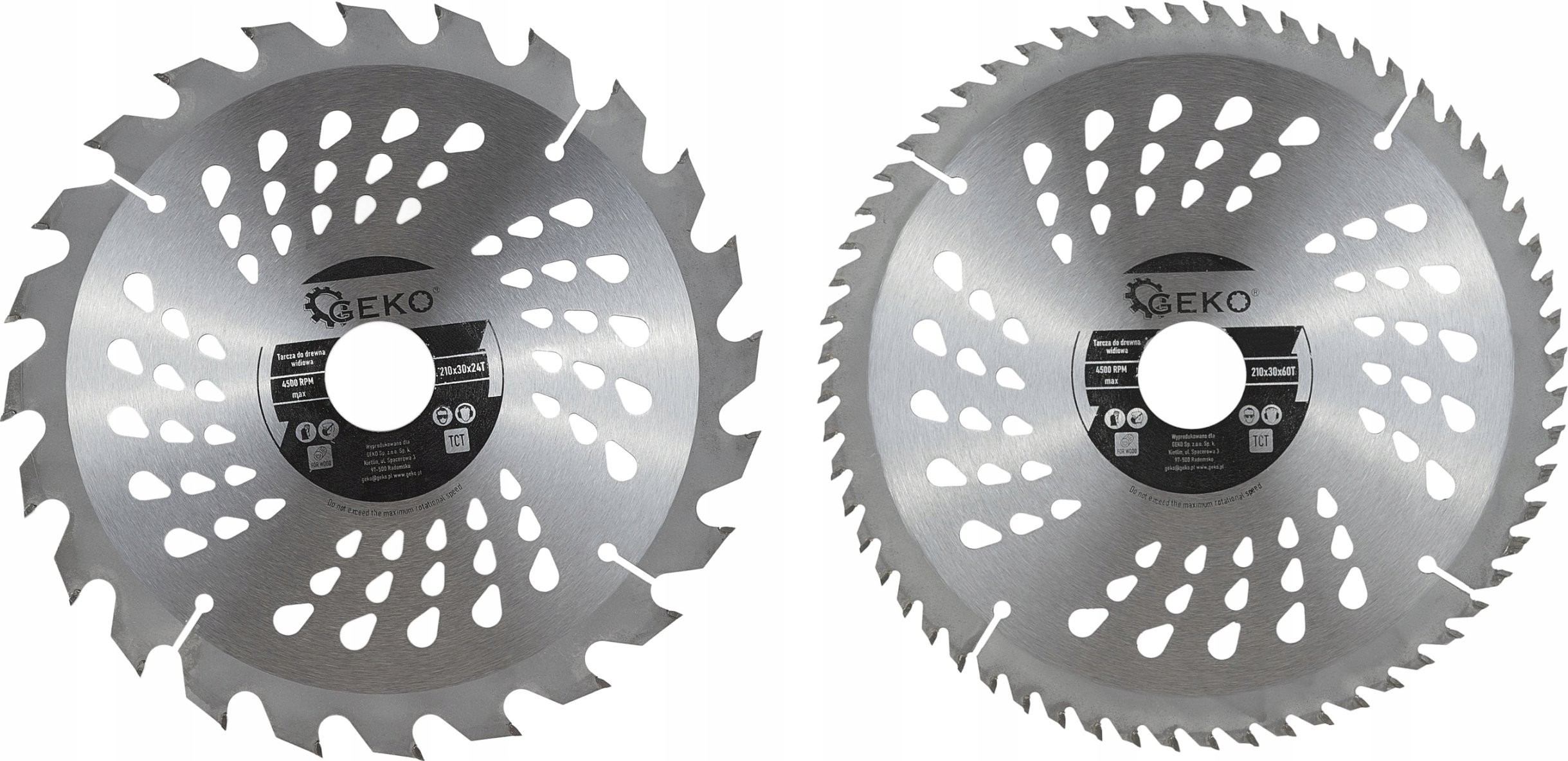 - Im Lieferumfang des Sägetisches sind zwei Sägeblätter mit einem Durchmesser von 210 mm enthalten, die mit 24 bzw. 60 Hartmetallzähnen ausgestattet sind