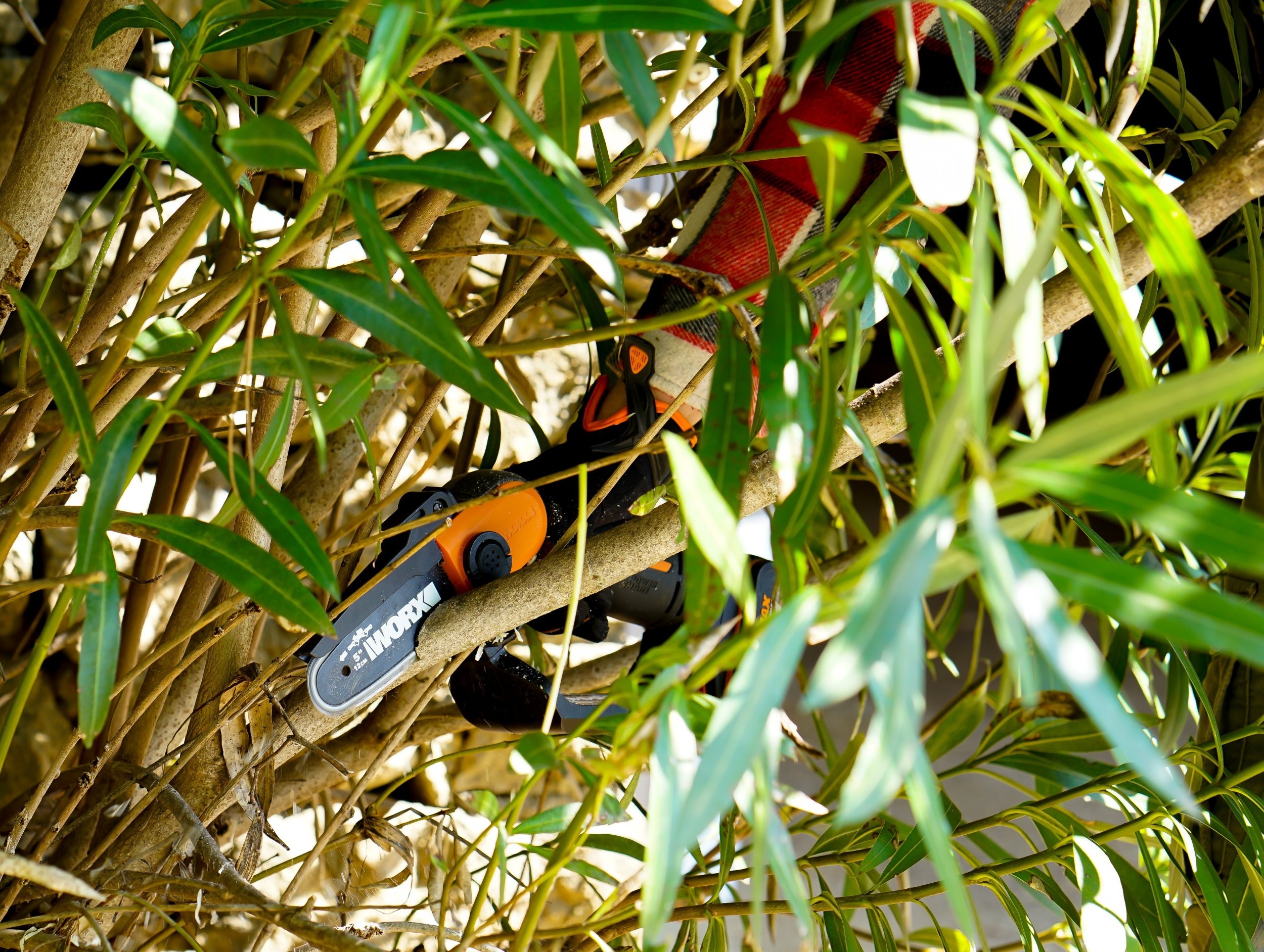Die handliche Worx-Astschere mit einer Schnittlänge von 12 cm ist leistungsstark, kompakt und vielseitig. Ihre leichte Bauweise wurde speziell für die Einhandbedienung entwickelt. Der bequeme und ergonomische Griff in Kombination mit der oberen Schutzabdeckung, die die Hände vor Verletzungen schützt, erhöht den Bedienkomfort erheblich. Der leistungsstarke, vibrationsarme Bürstenlosmotor sorgt für hohe Arbeitseffizienz. Ausgestattet mit einer Sicherheitsverriegelung