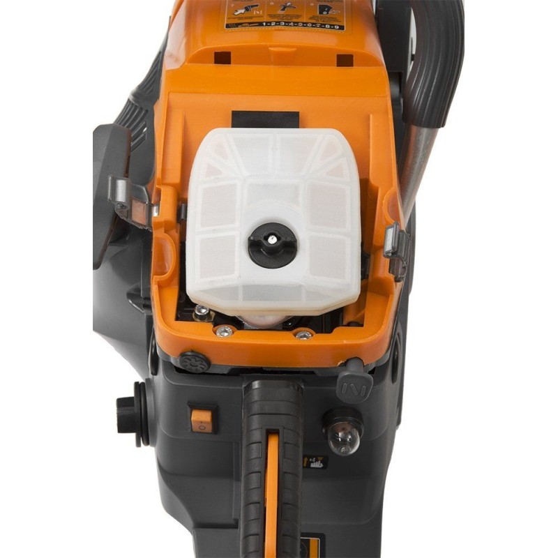 Eine effektive Schmierung ist der Schlüssel zur Maximierung der Lebensdauer der Kette. Fehlendes oder unzureichendes Öl führt mit der Zeit zu einer Überhitzung der Führungsschiene und der darauf laufenden Kette. Der Kontakt von Metall auf Metall beschädigt die Kette, die Führungsschiene und sogar den Motor, was im Laufe der Zeit zu irreversiblen Schäden an der Kettensäge führen kann. Bei diesem Ölsystem wird das Schmiermittel während des Betriebs der Kettensäge in gleichmäßiger Geschwindigkeit aus dem Ölbehälter auf die Führungsschiene und die Kette abgegeben. Ein offensichtlicher Vorteil ist, dass man nicht daran denken muss, den Knopf zu drücken, um Öl abzulassen, sodass ein ordnungsgemäß funktionierendes System die Schmierung des Systems während der gesamten Betriebszeit gewährleistet. Man muss jedoch daran denken, Öl in den Tank nachzufüllen! Hier ist es von entscheidender Bedeutung, alles in Ordnung zu halten.