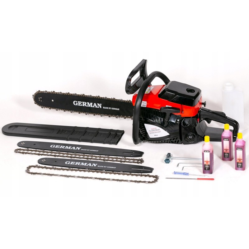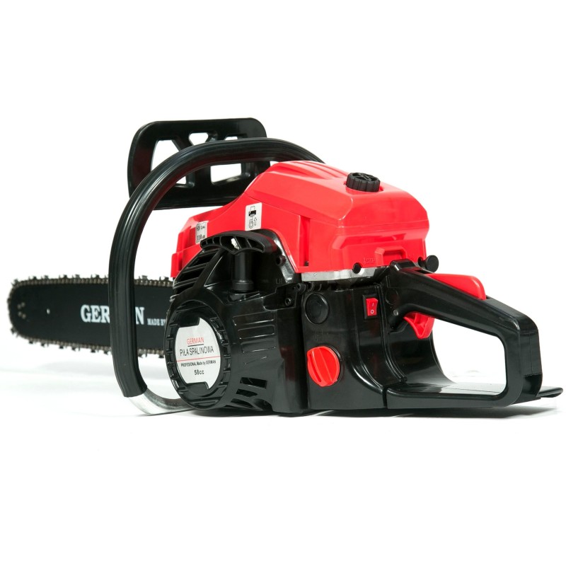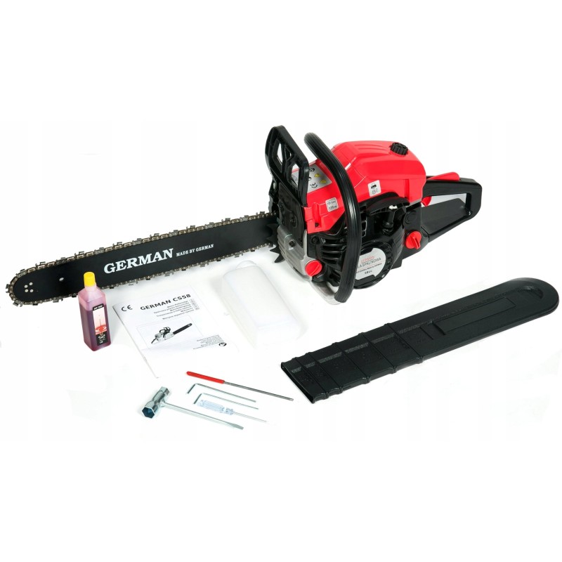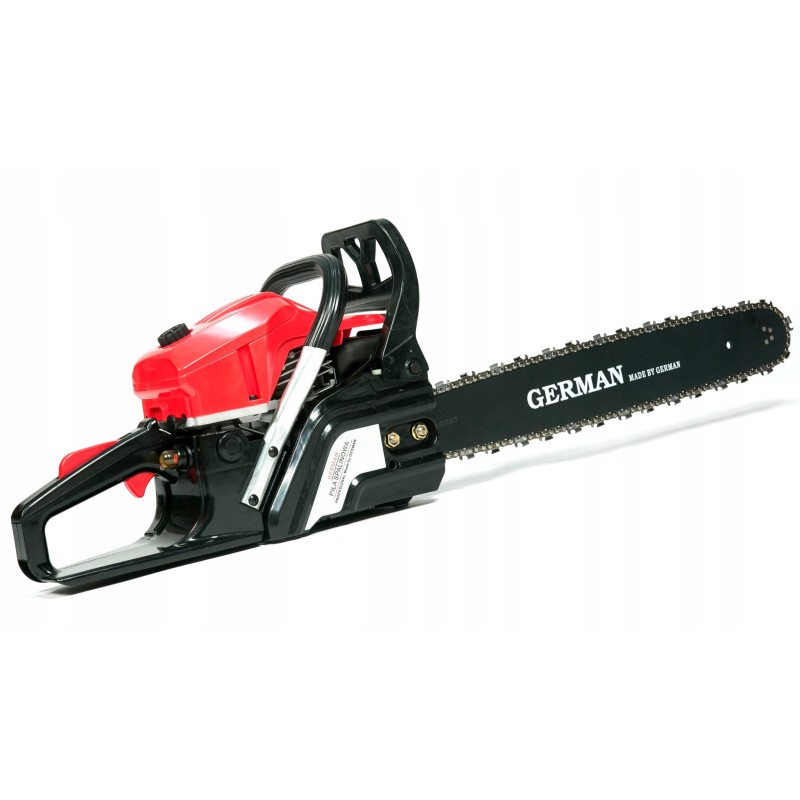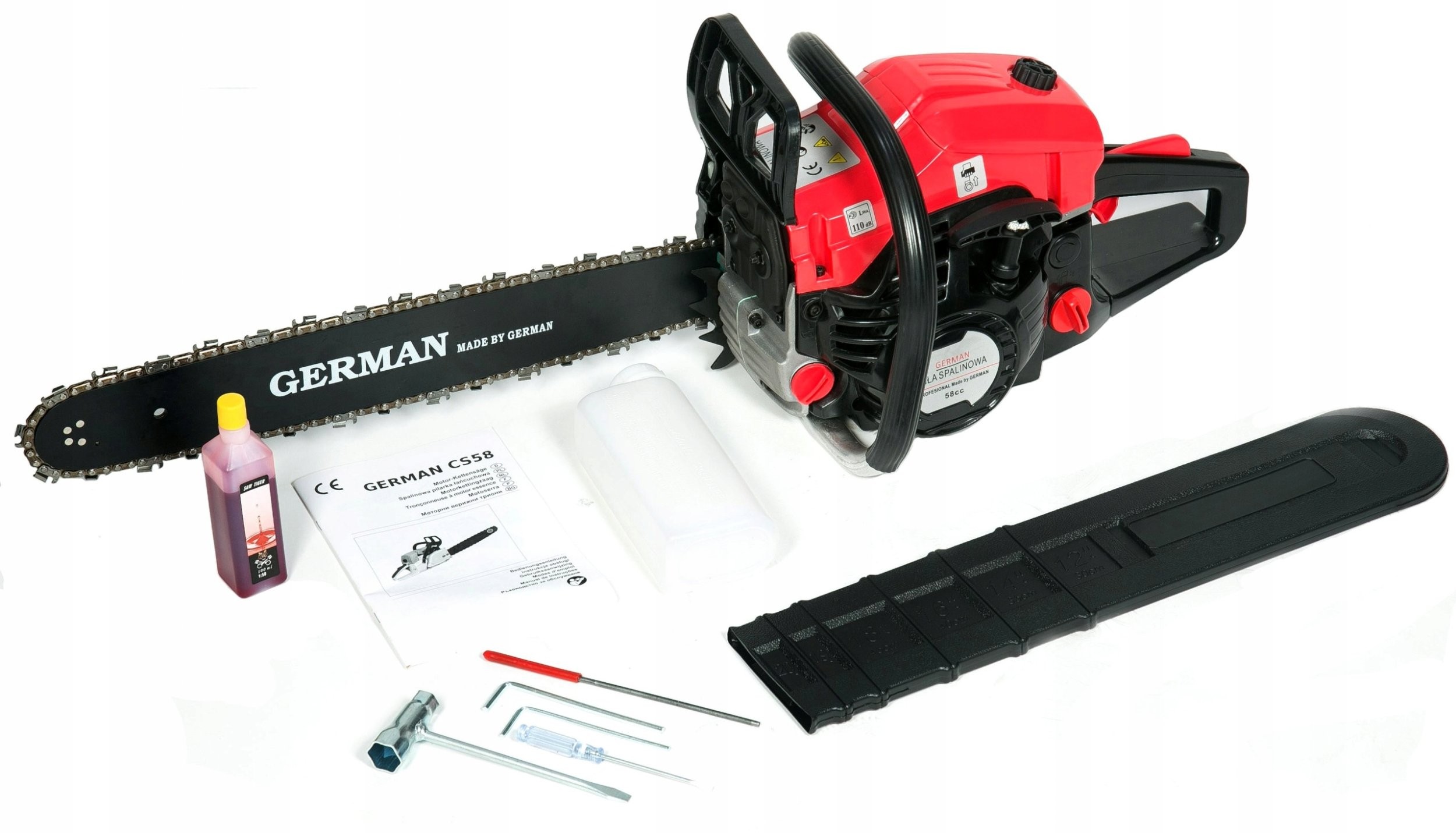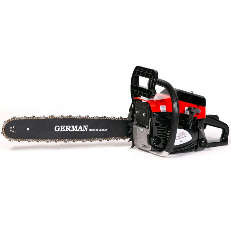 Die German CS58 Motorsäge ist mit Sicherheitsfunktionen ausgestattet, wie beispielsweise einem Antivibrationssystem, das Vibrationen während des Betriebs minimiert, sowie einer Bremse, die die Sicherheit bei der Nutzung erhöht. Dank dieser Lösungen wird die Arbeit nicht nur effizient, sondern auch sicher.