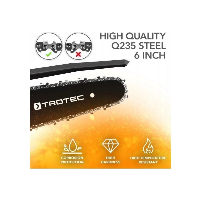 - Die 6-Zoll-Führungsschiene sorgt für hohe Leistung und Schnittkraft