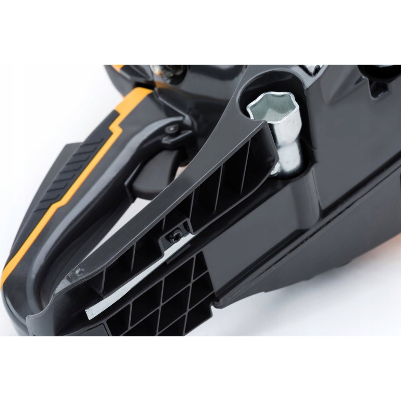 Die Kettensäge ist mit einer automatischen Ölpumpe ausgestattet, die eine Regulierung der Schmiermittelzufuhr ermöglicht. Zylinder und Kolben sind mit einer Chromschicht überzogen, die abrieb- und hitzebeständig ist. Dank dieser Lösung erhält der Motor eine deutlich längere Lebensdauer.