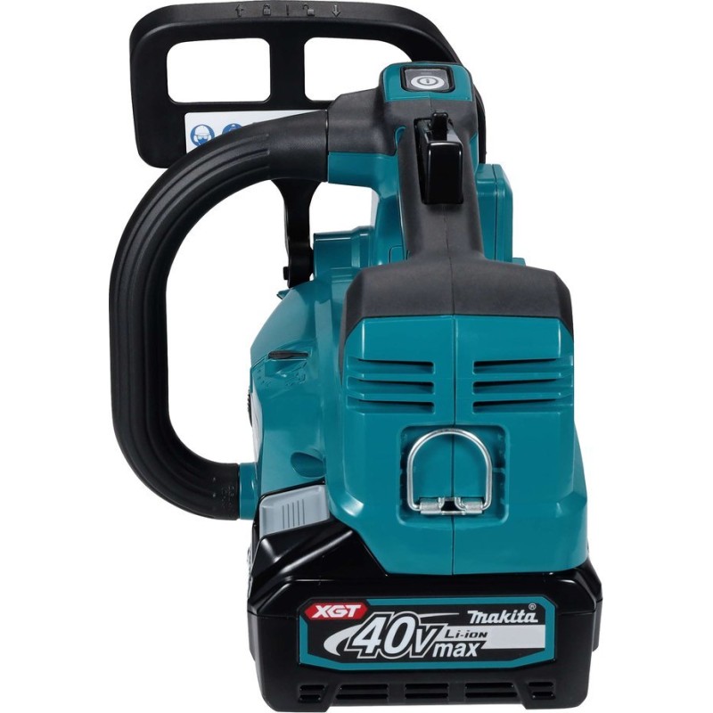 Akku-Kettensäge mit 40 V Max XGT-Akku, ausgestattet mit einer 25 cm langen Carving-Schiene, deren Leistung der einer Benzinkettensäge mit 30 cm³ Hubraum entspricht. Sie ist mit der WetGuard-Technologie ausgestattet, die für hervorragende Wasserbeständigkeit sorgt. Für den Einsatz unter schwierigen Bedingungen konzipiert.