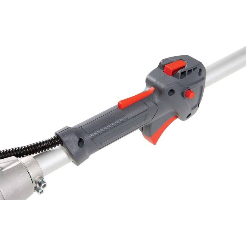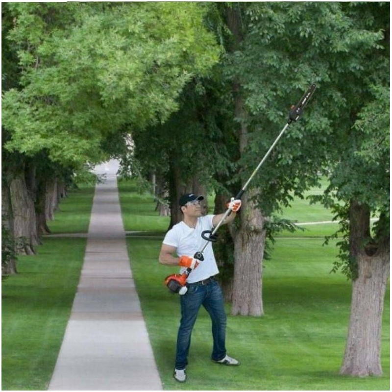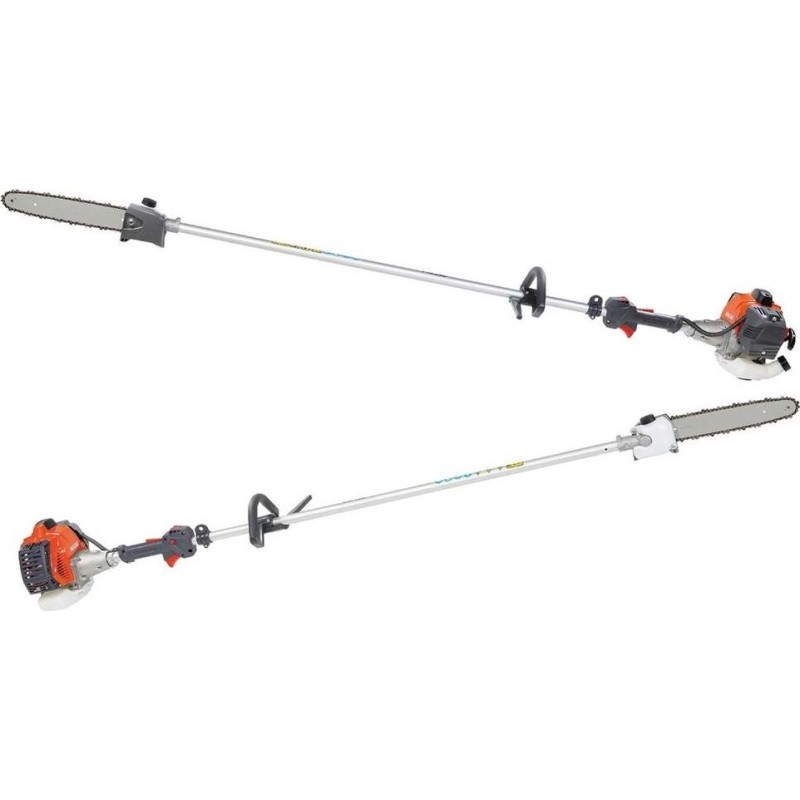 OLEO-MAC PPH250 – Die Kettensäge OLEO-MAC PPH 250 verfügt über einen 2,2 Meter langen Ausleger. Dies ermöglicht problemloses Arbeiten mit einer Reichweite von bis zu ca. 3,5 Metern. Erwähnenswert ist, dass die Führungsschiene des Geräts eine Länge von 25 cm hat und sich das Gerät hervorragend für kleinere Arbeiten eignet, auch an schwer zugänglichen Stellen. Die Kettensäge OLEO-MAC PPH250 ist sehr einfach zu bedienen und in Betrieb zu nehmen. Das Gerät ist sehr leicht. Die Kettensäge OLEO-MAC PPH250 ist aufgrund ihrer Bauweise für das Entfernen von trockenen und unnötigen Ästen beim Baumschnitt vorgesehen. Dank des EMAK-Zweitaktmotors mit einem Hubraum von 25,4 cm³ und einer Leistung von 1,2 PS sind wir nicht durch Stromkabel eingeschränkt. Die im Lieferumfang enthaltene Kette hat eine Größe von 3/8”, 0,50 mm. Die Arbeit ist nicht vom Zugang zum Stromnetz abhängig und wesentlich sicherer, da man nicht ständig auf das Stromkabel achten muss. Die Kettensäge PODKRZESYWARKA OLEO-MAC PPH250 ermöglicht ein stabiles Arbeiten vom Boden aus ohne Verwendung einer Leiter. Die 25 cm lange Führungsschiene ermöglicht das Schneiden dicker Äste. Die Höhe der KettensägeOLEO-MAC PPH250 ermöglicht eine wirklich große Reichweite, was sicheres Arbeiten ohne Leiter gewährleistet. Die hervorragende Balance erhöht den Komfort beim Sägen. Praktischer Griff, an dem sich der Schalter befindet.
