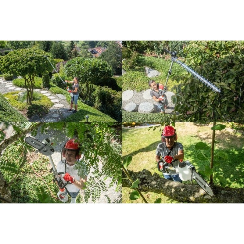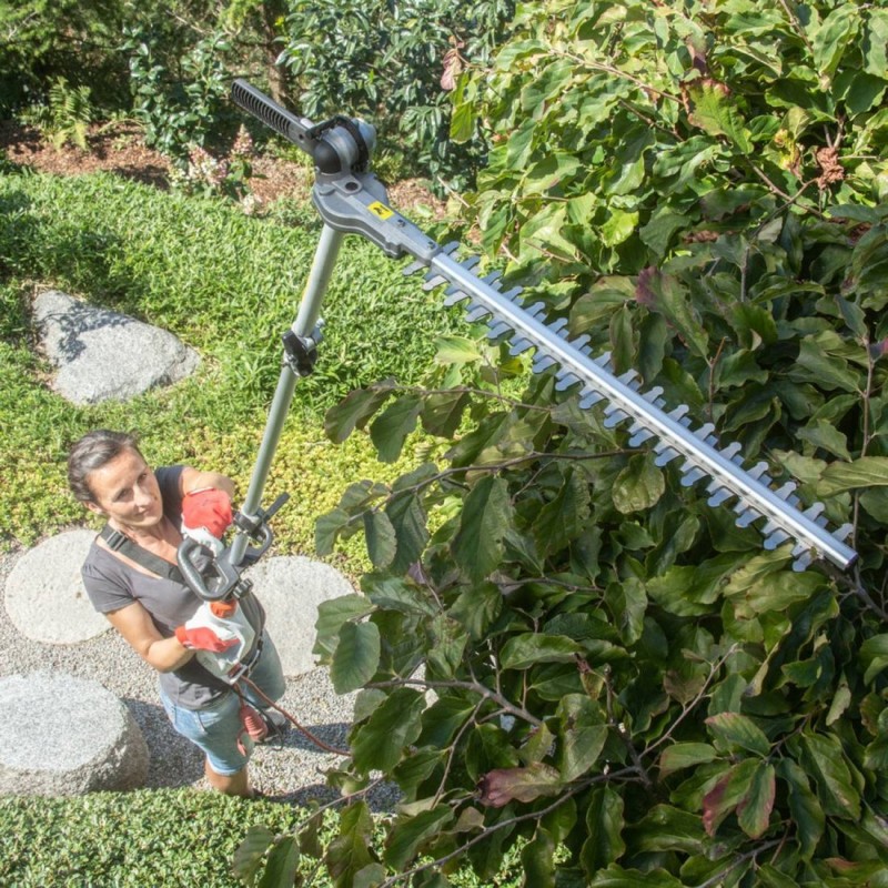 IKRA ITHK 1000 KETTENSÄGE, BAUMSCHNEIDER, GARTENSCHERE, HECKENSCHERE, ELEKTRISCH, AUF TELESKOPARM, 2-in-1-BAUMSCHNEIDER – Leichtes Gerät auf Teleskoparm zum Schneiden von Hecken in großer Höhe und in jedem Winkel ohne Leiter.