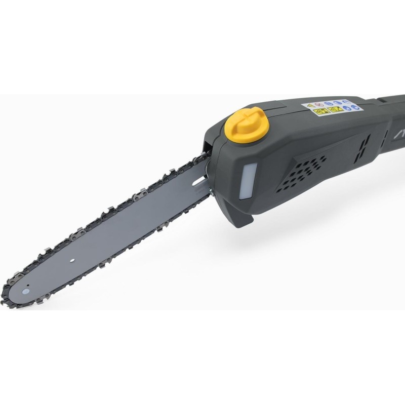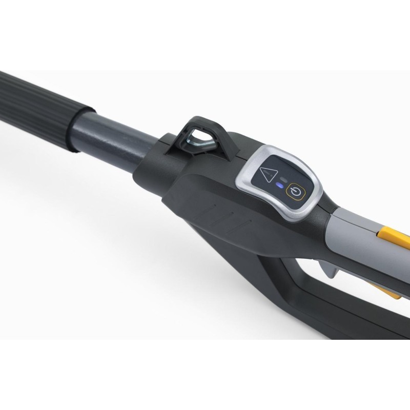 Die hochleistungsfähige Kette auf der Führungsschiene minimiert zudem den Rückschlag. Dank des um 112° drehbaren Griffs mit sechs Positionen lässt sich das Gerät bequem aus verschiedenen Winkeln an die Pflanzen heranführen. Und dank des griffigen Gummigriffs, des Stiels und des Haken für die Arbeitsgurt können Sie Ihre Aufgaben erledigen, ohne sich an Händen und Gliedmaßen zu verletzen. Um einen sicheren, komfortablen und präzisen Schnitt zu gewährleisten, ist das MT 500e-Set mit einem Stoßfänger unter der Führungsschiene ausgestattet, der es ermöglicht, sich während der Arbeit auf Äste zu stützen. Das Set enthält einen 2-Ah-Akku sowie ein Ladegerät.