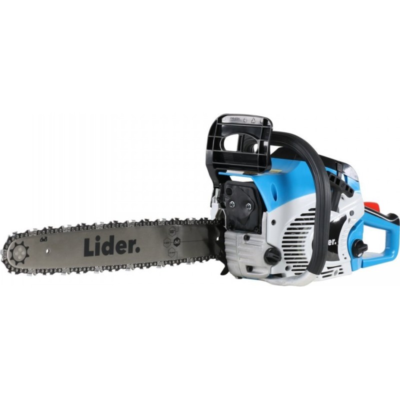 Die Benzinkettensäge Lider RG 5318-A4 ist eine leistungsstarke, klassische Kettensäge für den landwirtschaftlichen Einsatz. Das beschriebene Modell ist die neueste Version des Geräts der Marke Lider. Für die Arbeitsleistung sorgen ein 2-Takt-Benzinmotor mit 53 cm³ Hubraum und 2,7 PS Leistung sowie eine 45 cm lange Führungsschiene. Der Hersteller hat sich darauf konzentriert, Leistungsfähigkeit mit Komfort zu verbinden. Das Ergebnis ist ein Gerät mit einem in der Praxis bewährten Antivibrationssystem, einer Kraftstoffanzeige und einer automatischen Kettenschmierung. Da es sich um ein Gerät für die Holzbearbeitung im privaten Bereich handelt, wurde auch auf das Design geachtet. Daher ist die Benzinkettensäge Lider RG 5318-A4 in einer ansprechenden blauen Farbe erhältlich. Testen Sie die Möglichkeiten dieser Kettensäge beim Schneiden von Baumstämmen, Ästen oder Schnittholz in Ihrem eigenen Garten!