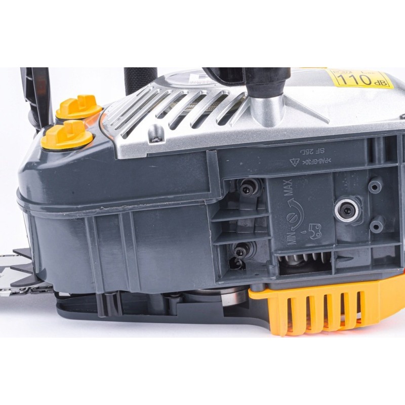 Die Kettensäge Powermat PM-PSP-2HP wurde mit Blick auf den Komfort des Benutzers entwickelt. Das leichte Gehäuse aus strapazierfähigem Kunststoff sowie die gut gekennzeichneten Einfüllöffnungen für Öl und Kraftstoff machen die Bedienung des Geräts einfach und intuitiv.