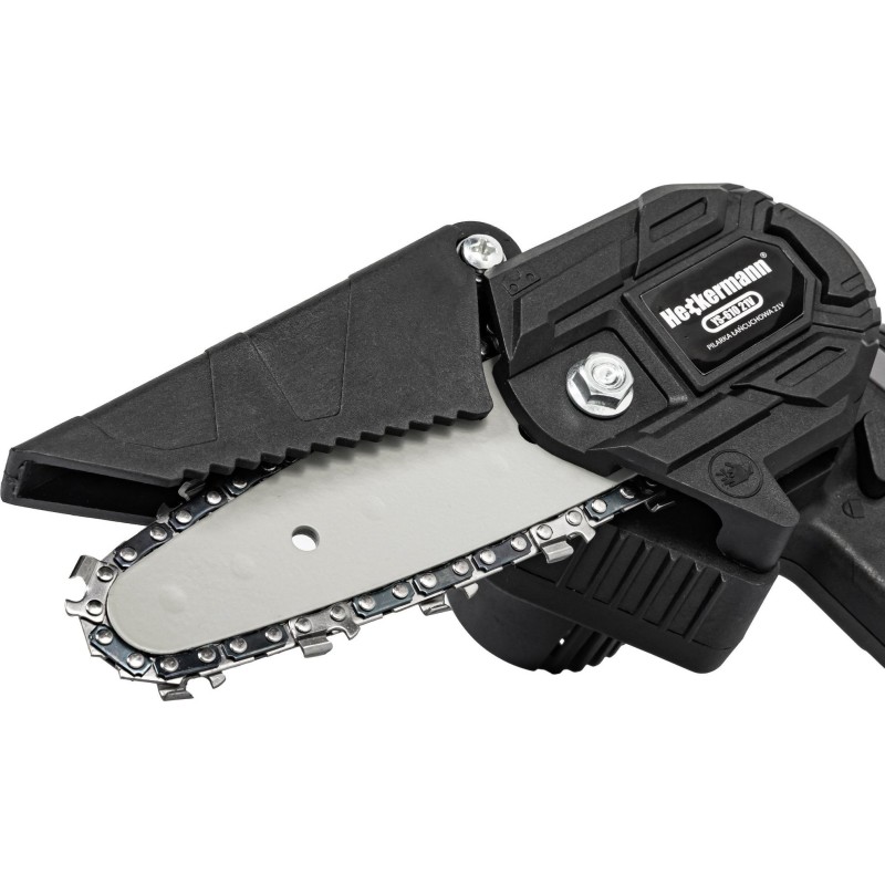 ⭐ Die Akku-Kettensäge ist mit einer 4 Zoll langen Führungsschiene mit Schutzabdeckung ausgestattet, die verhindert, dass Sägespäne und Schmutz in die Luft gelangen.