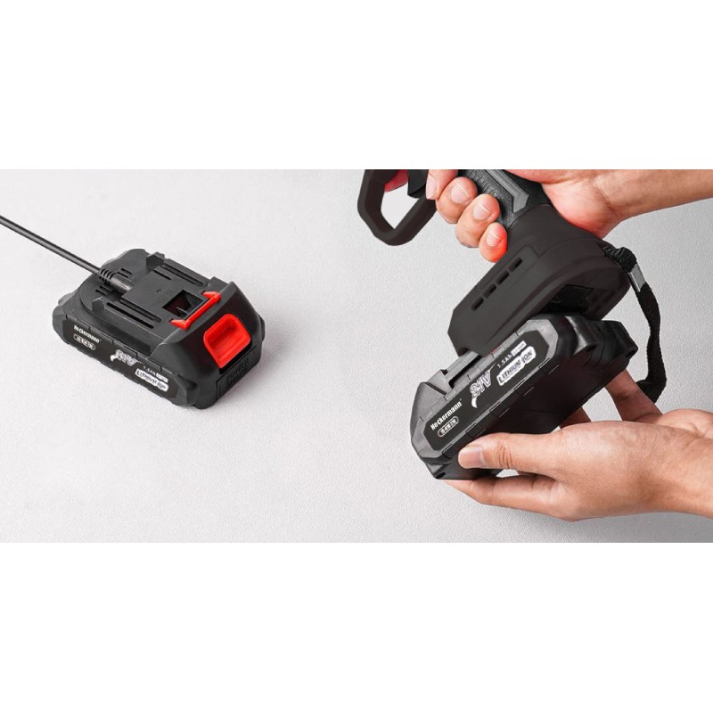 ⭐ Die Akku-Kettensäge ist mit einem leistungsstarken 1500-mAh-Lithium-Akku ausgestattet, der bis zu 60–80 Minuten ununterbrochen arbeiten kann.