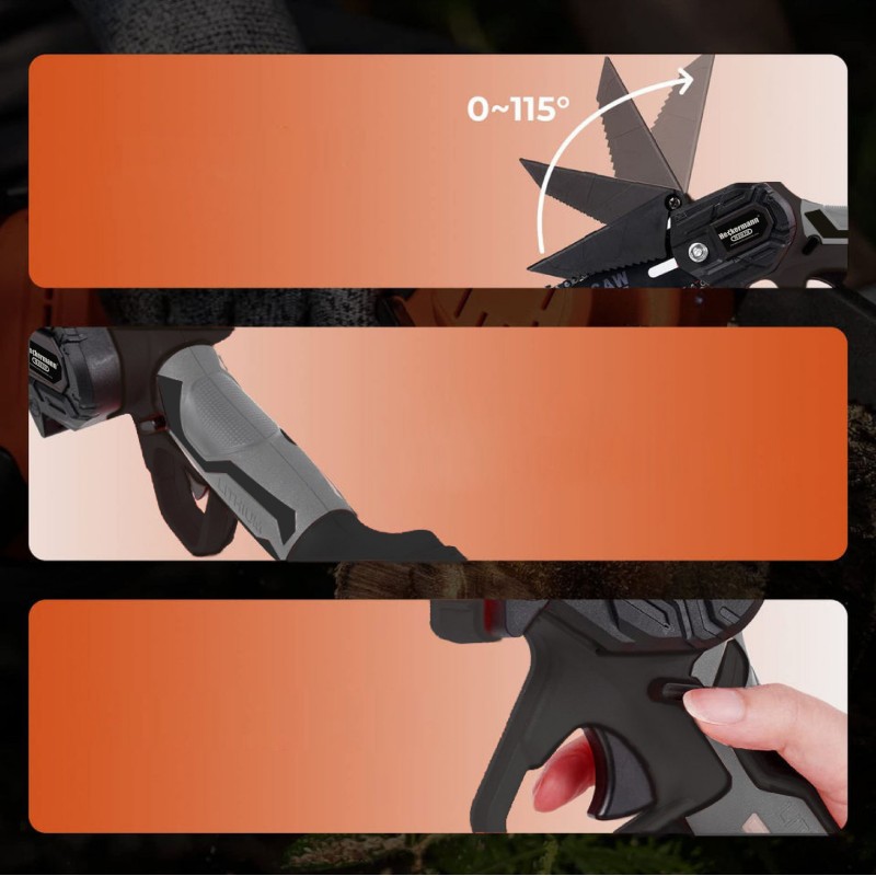 ⭐ Die Akku-Mini-Kettensäge ist kompakt und verfügt über einen bequemen, rutschfesten Griff, was die Arbeit mit dem Gerät sehr komfortabel macht.