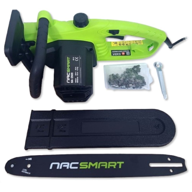 Elektrische Kettensäge der Marke NAC mit einem 1600-W-Motor. Das Gerät eignet sich ideal zum Schneiden von Brennholz und Gartenholz, zum Abtrennen von Ästen sowie für Bauarbeiten. Die Säge verfügt über ein automatisches Kettenschmiersystem, wodurch sie keine spezielle Wartung erfordert, was viel Zeit spart. Die Säge ist leicht, wiegt nur 4,2 kg und ermüdet den Benutzer daher auch bei längeren Arbeiten nicht. Im Lieferumfang der Säge sind eine 35 cm (14") lange Führungsschiene, eine Kette, eine Kunststoffabdeckung für die Führungsschiene sowie 1 Schlüssel enthalten.