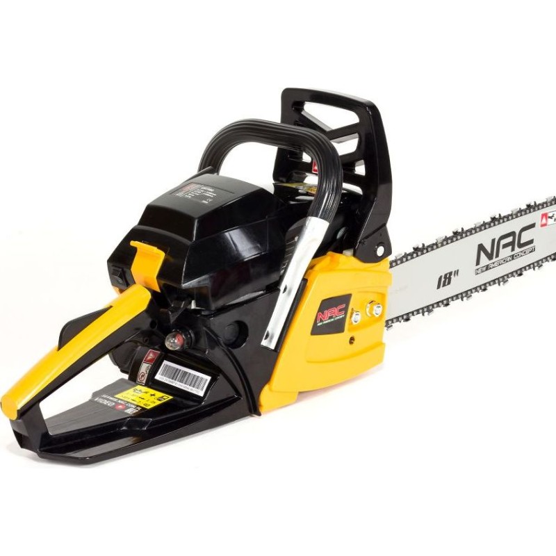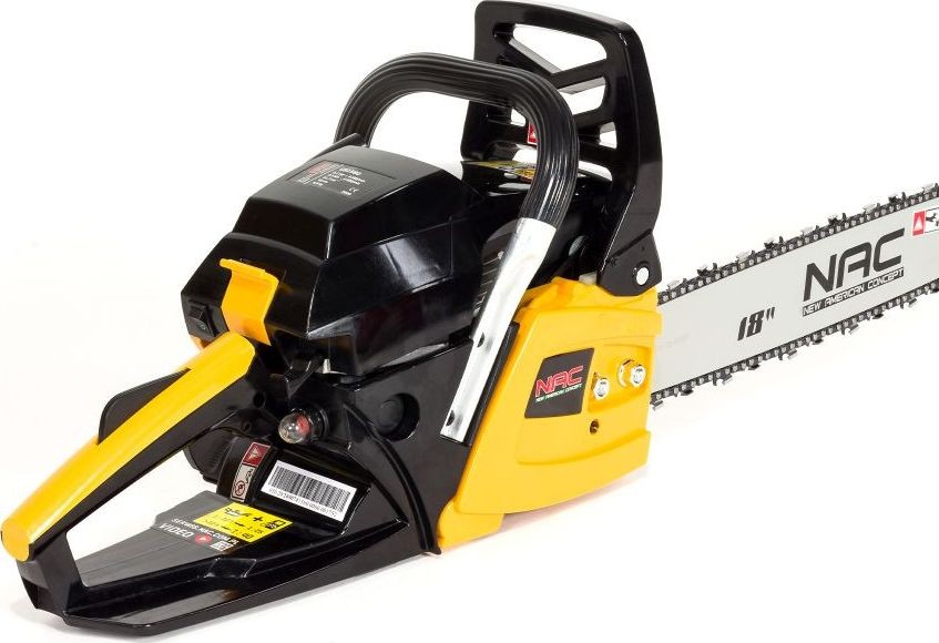 Die Benzinkettensäge NAC CS1560 ist mit einem Motor mit 51,7 cm³ Hubraum und einem maximalen Drehmoment von 2,3 Nm ausgestattet, der sich hervorragend für alle Arbeiten im Garten, auf dem Bauernhof, auf dem Grundstück, auf der Baustelle sowie bei Arbeiten im Wald eignet. Die Kettensäge verfügt über eine 45 cm lange Führungsschiene mit Lager, die für sehr gute Arbeitsergebnisse sorgt. Ein Stahl-Rücklaufsperrkamm, ein Mechanismus zum sofortigen Stoppen der Kette sowie integrierte Stoßdämpfer erhöhen die Sicherheit und den Arbeitskomfort. Zudem ist das Gerät mit einer LOW-KICKBACK-Kette ausgestattet, die sich durch geringe Vibrationen und reduzierten Rückschlag auszeichnet.
