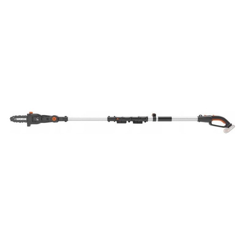 Die moderne Akku-Kettensäge Worx WG349E.9 ist das ideale Werkzeug zum Beschneiden schwer zugänglicher Äste, hoher Bäume und Sträucher. Dank ihrer leichten und kompakten Bauweise mit Inline-Motor und teleskopierbarer Stangenhalterung ermöglicht sie eine bequeme und effektive Handhabung. Der Teleskopausleger mit einer einstellbaren Länge von bis zu 2,3 m ermöglicht das einfache Erreichen hoher Baumkronen, ohne dass eine Leiter verwendet werden muss.