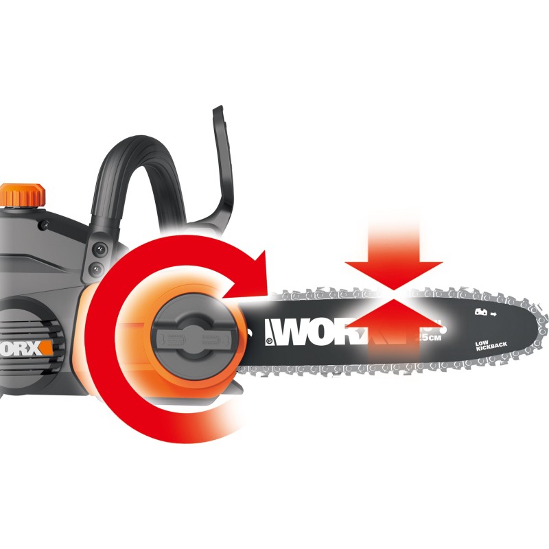 Mit dem Kauf eines Geräts von Worx erwerben Sie ein Produkt von hervorragender Qualität, das Verbesserungen bietet, die den Bedienkomfort erhöhen. Die Kettensäge verfügt über ein automatisches Kettenspannsystem. Dies gewährleistet, dass die Spannung beim Spannen richtig eingestellt bleibt. Nicht zu verachten ist auch die automatische Schmierfunktion. Den Ölstand kannst du dank des am Gerät sichtbaren Schauglases leicht abschätzen, sodass du nie von einem Mangel überrascht wirst und rechtzeitig nachfüllen kannst.