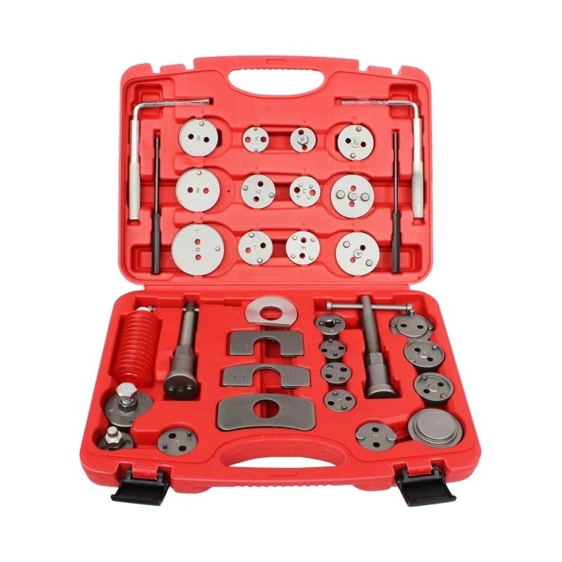 Das Set enthält 35 Teile, die auf die Größe der Bremskolben der meisten europäischen und asiatischen PKW-Marken abgestimmt sind.