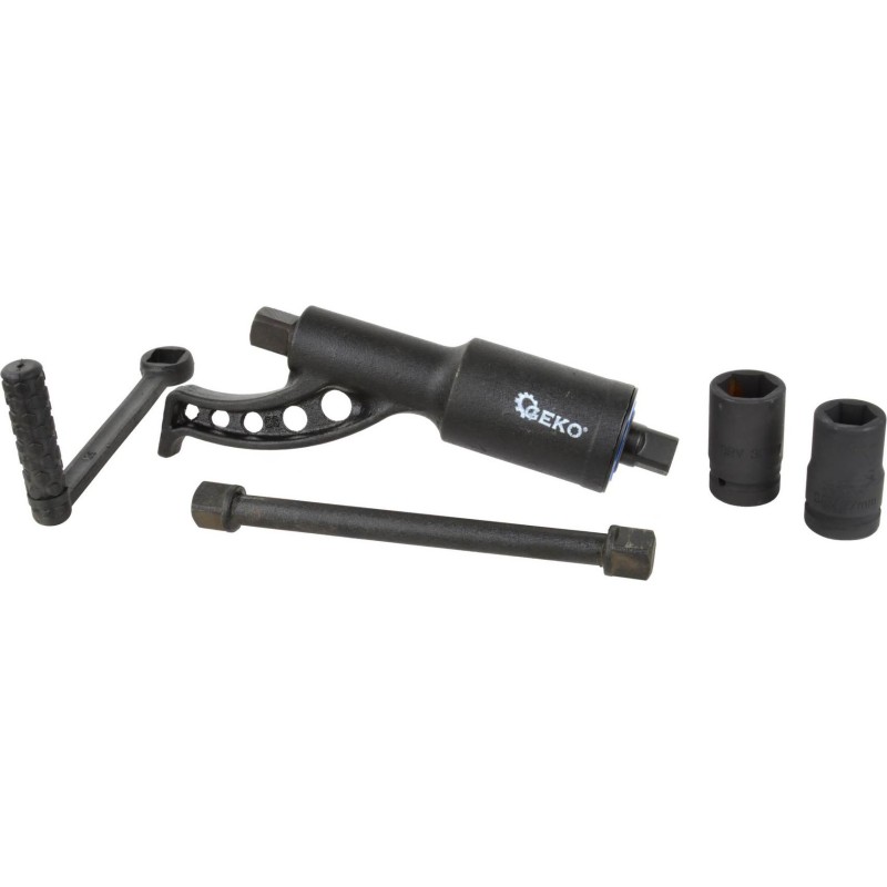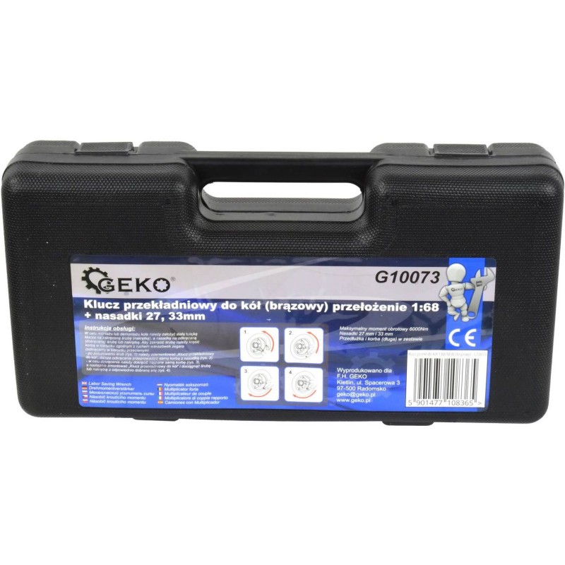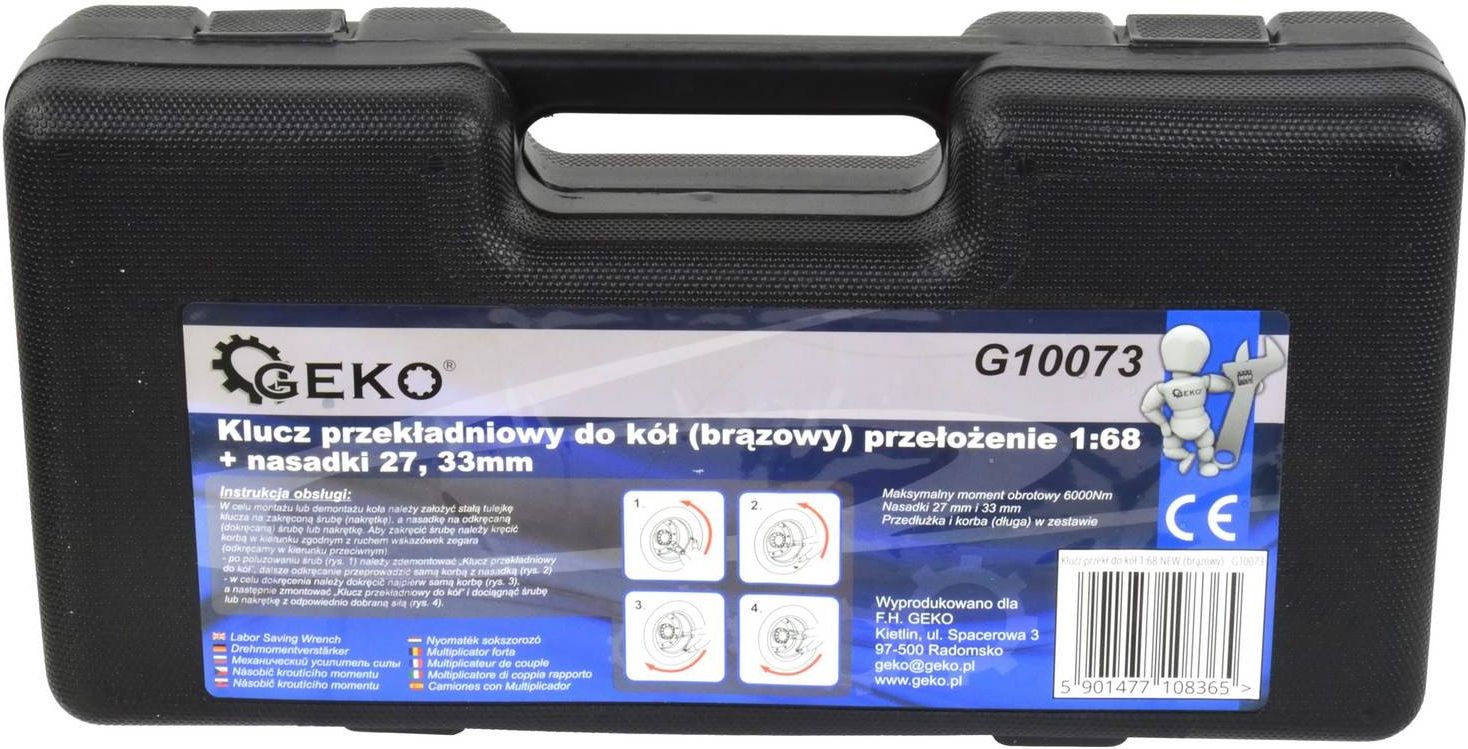 Getriebeschlüssel für Räder 1:68 NEU (braun) Der Schlüssel wird zum Anziehen und Lösen von Radschrauben an verschiedenen Fahrzeugen und Maschinen verwendet. Aufgrund der hohen Übersetzung und Kraft wird er hauptsächlich zum Lösen von Schrauben verwendet. TECHNISCHE DATEN: - Maximales Drehmoment 6000 Nm - Steckschlüsselaufsätze 27 mm und 33 mm - Verlängerung und Kurbel (lang) im Lieferumfang enthalten