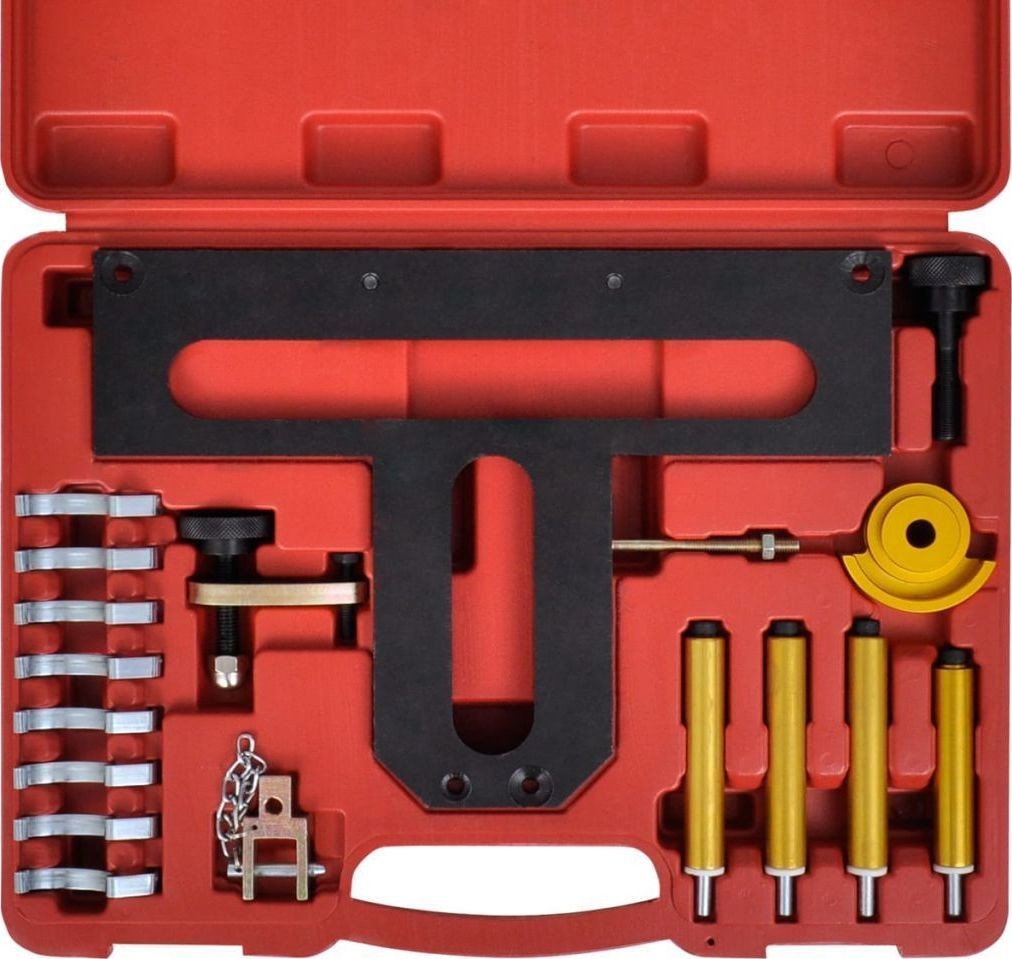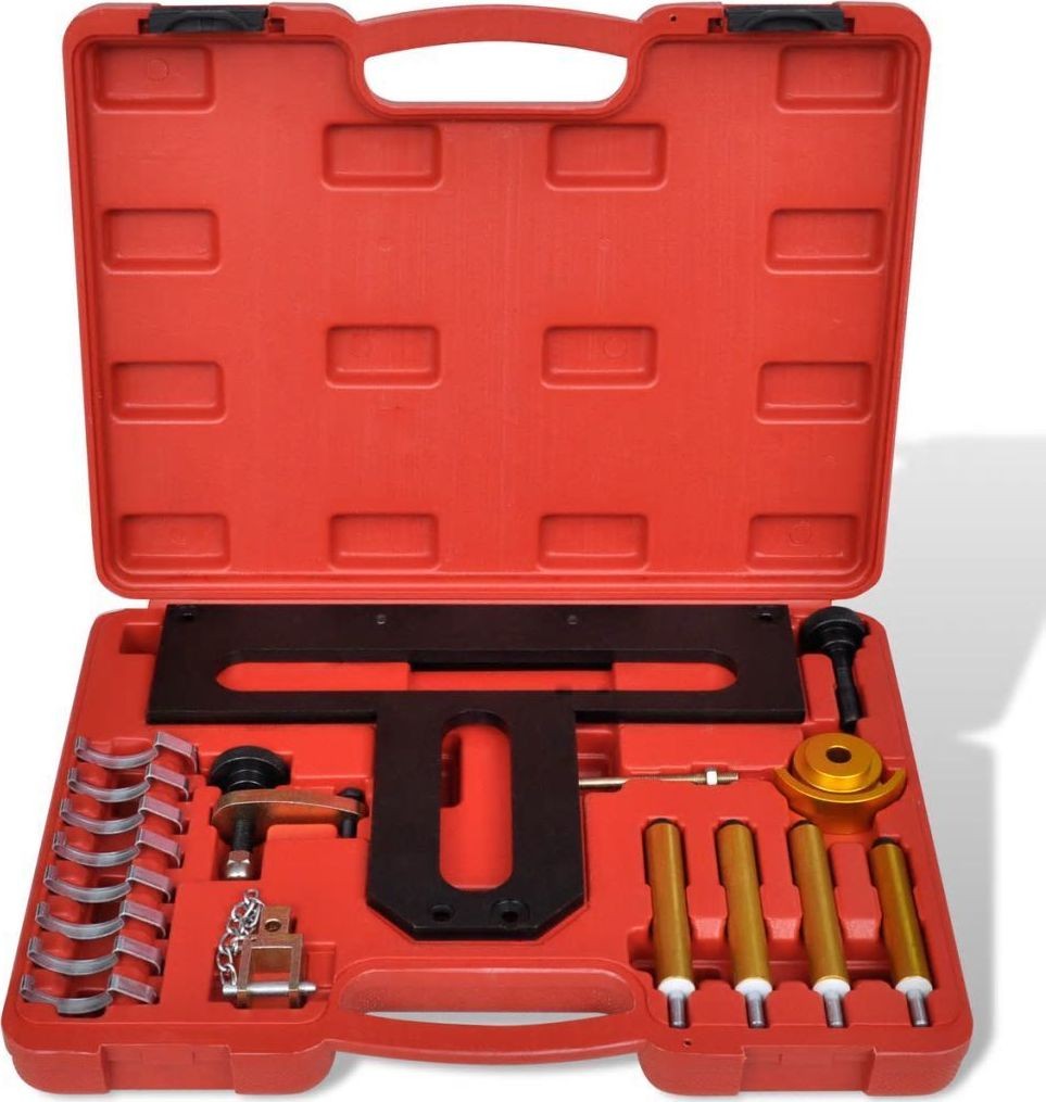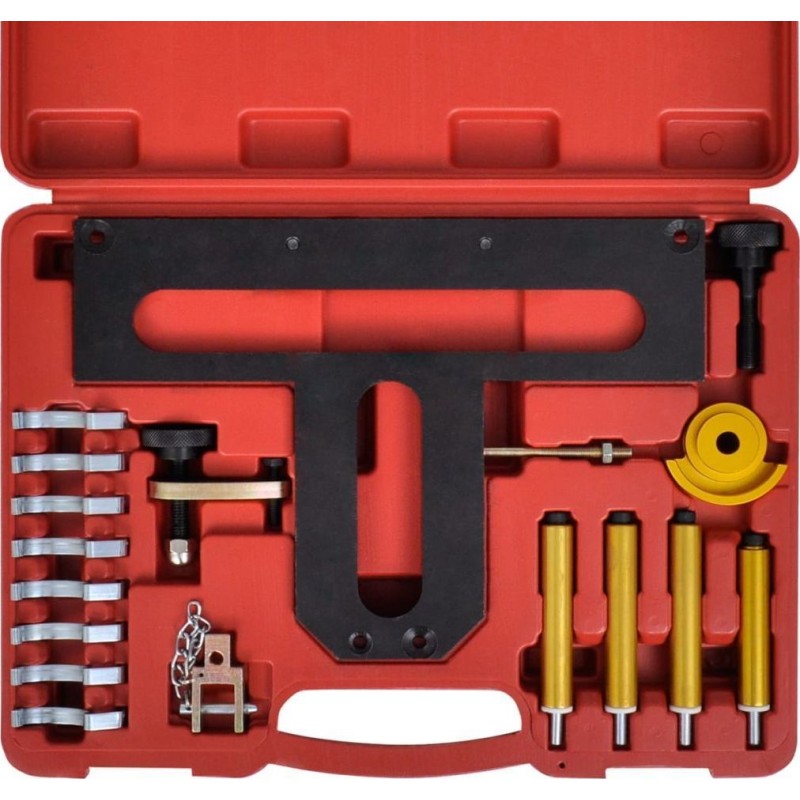 Der Werkzeugsatz eignet sich für den Ein- und Ausbau der variablen Ventilsteuerung (Doppel-VANOS), für professionelle Motorreparaturen, zur korrekten Einstellung der Ventilhubsteuerung (Valvetronic) sowie für den Ausbau der Einlassnockenwelle, der Exzenterwelle oder der hydraulischen Stößel.