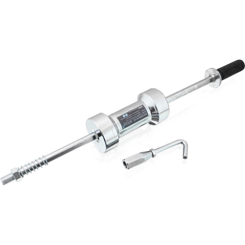 BITUXX-GLEITHAMMER ZUR BESEITIGUNG VON KAROSSERIEBEUGEN Der Bituxx-Gleithammer zum Ausbeulen von Beulen überzeugt durch seine massive Bauweise und seine enorme Schlagkraft von bis zu 11 Tonnen.Er ist universell einsetzbar und eignet sich für PKWs und LKWs. Der 6 kg schwere Gleithammer ist aus robustem Werkzeugstahl gefertigt und 66 cm lang. Im Set mit zusätzlichem Haken.