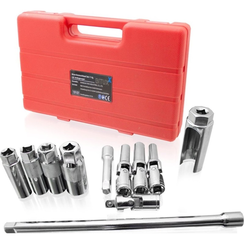 Das Bituxx-Zündkerzenschlüsselset ist aus hochwertigem Chrom-Vanadium-Stahl gefertigt und zeichnet sich durch eine lange Lebensdauer aus. Das Set enthält die gängigsten Größen von Zündkerzenschlüsseln, und die Verlängerungen ermöglichen einen einfachen Zugang zu den Zündkerzen.