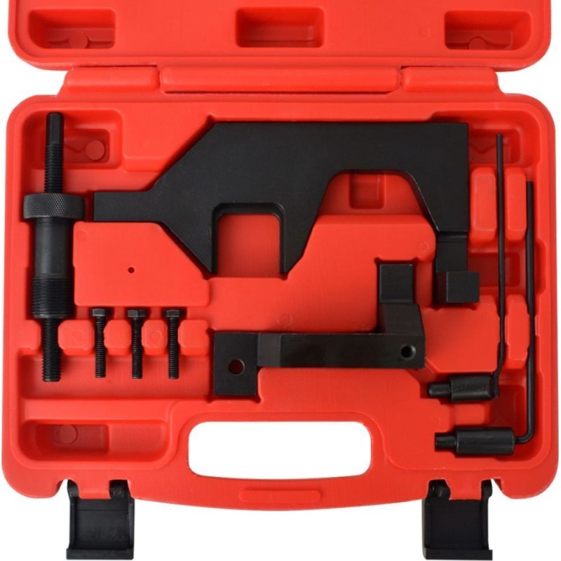 Dieses 8-teilige Set an Nockenwellen-Arretierungen eignet sich ideal zur Feststellung der korrekten Position sowohl der Nockenwelle als auch der Kurbelwelle beim Austausch des Zahnriemens oder der Steuerkette bei Benzinmotoren.