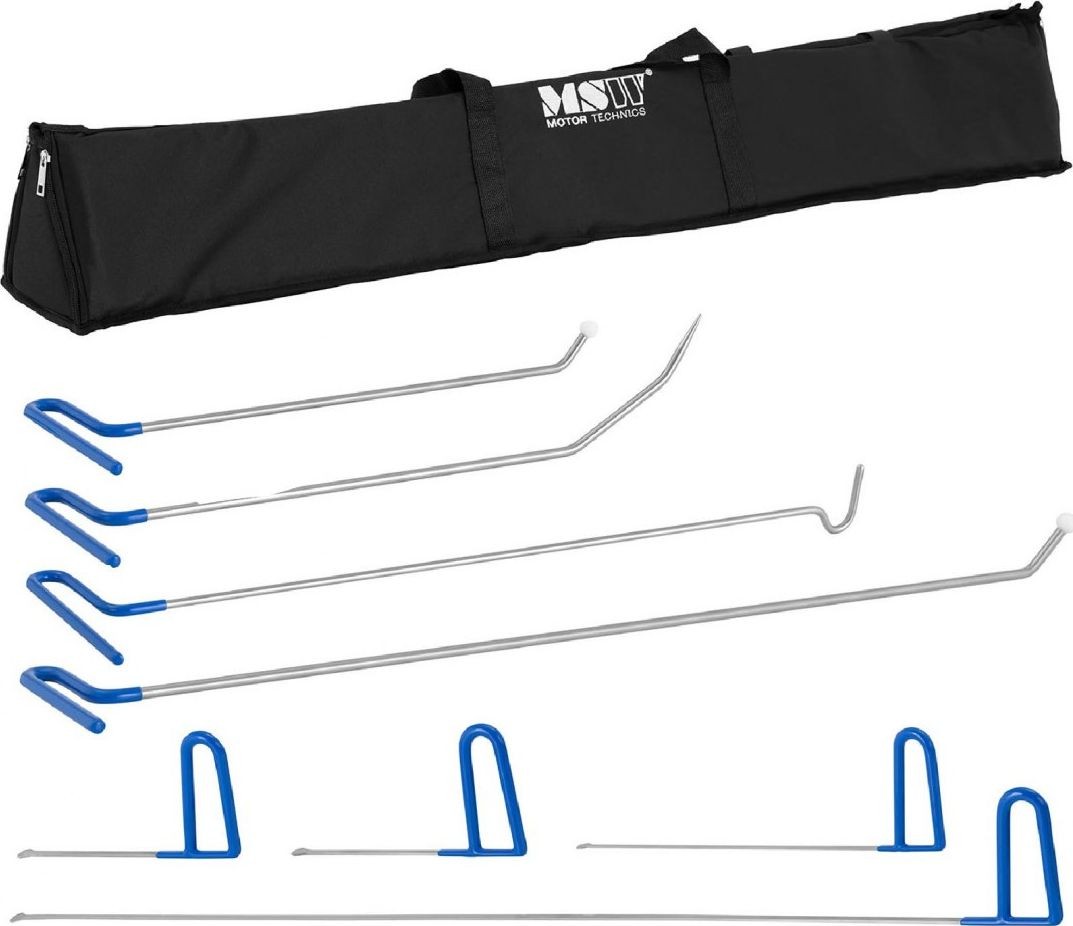 Das PDR-Set zur Ausbeultechnik der Marke MSW ist die perfekte Ausrüstung sowohl für professionelle Karosseriebauer als auch für Autoliebhaber und Heimwerker. Mit diesem PDR-Set beseitigen Sie Unebenheiten an der Karosserie von Autos und Motorrädern sowie an den Oberflächen von Kühlschränken oder Waschmaschinen. Das komplette Set aus 8 Karosseriestangen in verschiedenen Längen und mit unterschiedlichen Aufsätzen ermöglicht es Ihnen, selbst kleinste Dellen zu beseitigen. Der Schutz des Originallacks ist ein großer Vorteil dieses Sets zur Dellenentfernung. Die Karosserie-Stangen dienen nämlich dazu, Dellen von innen herauszudrücken, wodurch die Karosserieoberfläche nicht zerkratzt wird.