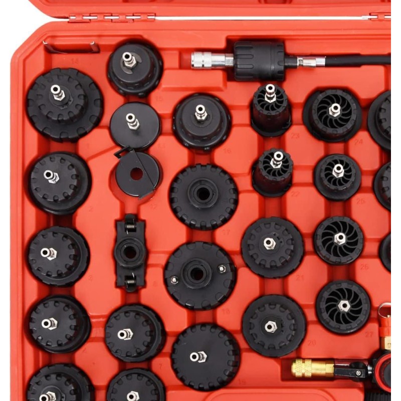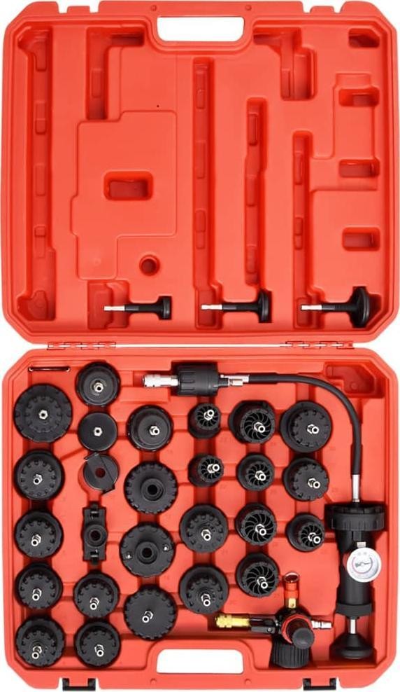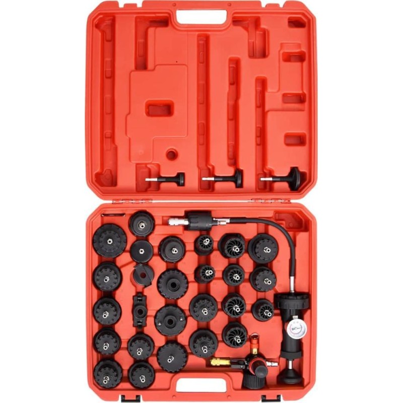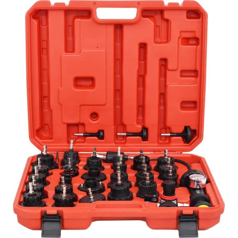 Wenn im Kühlsystem ein kleines Leck vorliegt oder wenn Sie Kühlflüssigkeit ohne Unterdruck nachfüllen, kann dies zu zahlreichen Problemen und sogar zu einem Motorschaden führen. Daher ist dieses Set deutlich günstiger als die Kosten für die Wartung oder den Kauf eines neuen Motors. Außerdem ist es in einem Etui untergebracht, was die Aufbewahrung und den Transport erleichtert.