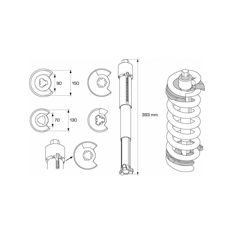 - Ø 70/130 mm Mercedes-Benz (W116, 123, 124, 129, 170, 201, 202, 210, 230