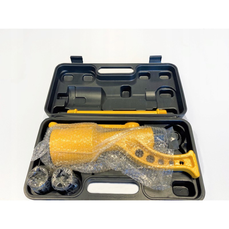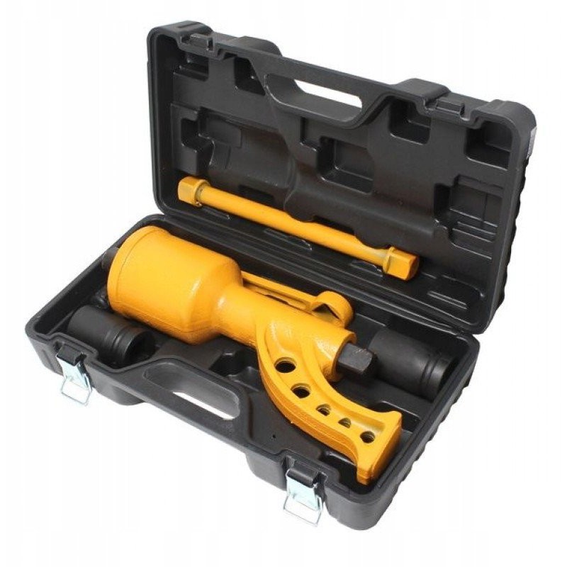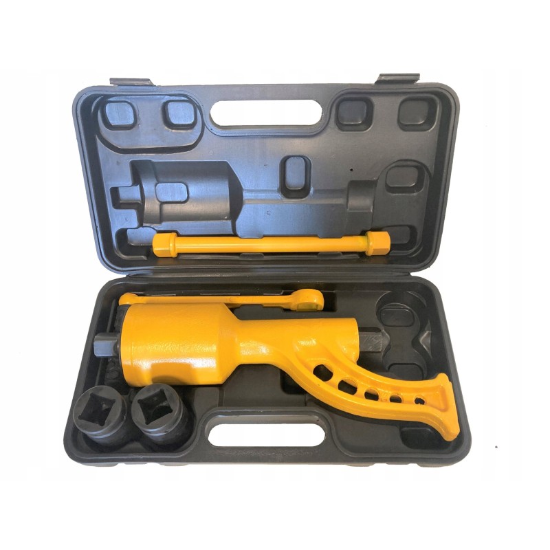 - Lieferumfang: Getriebeschlüssel, Lösenkurbel, Verlängerung, 32-mm-Steckschlüsseleinsatz, 33-mm-Steckschlüsseleinsatz, Koffer
