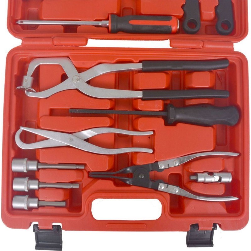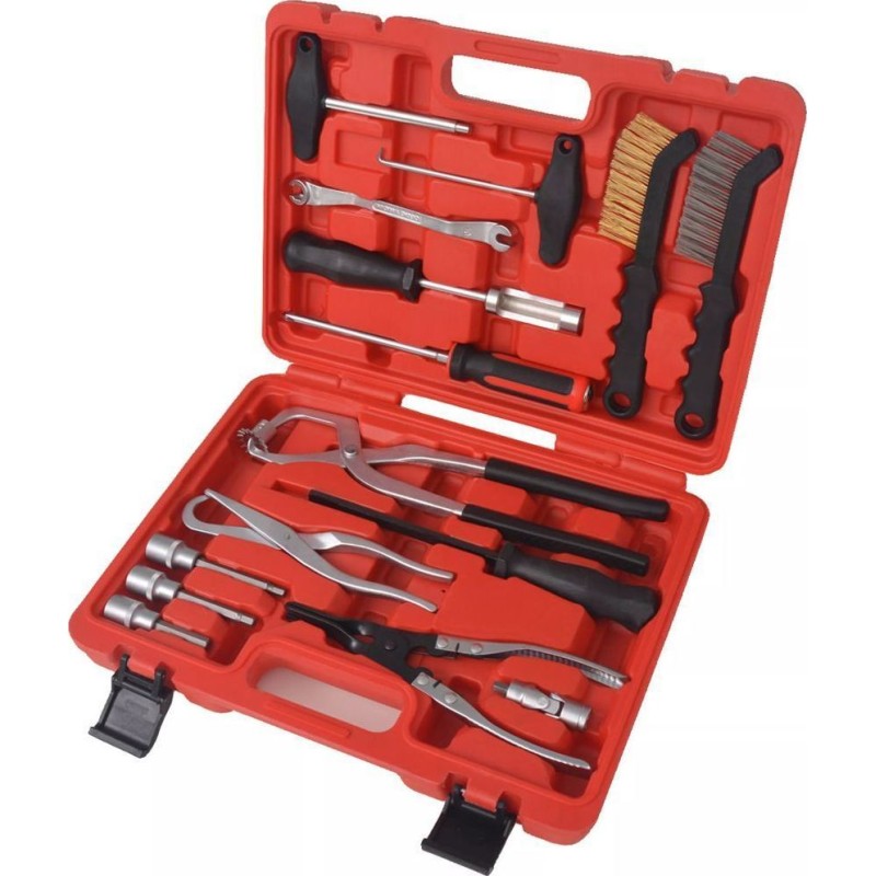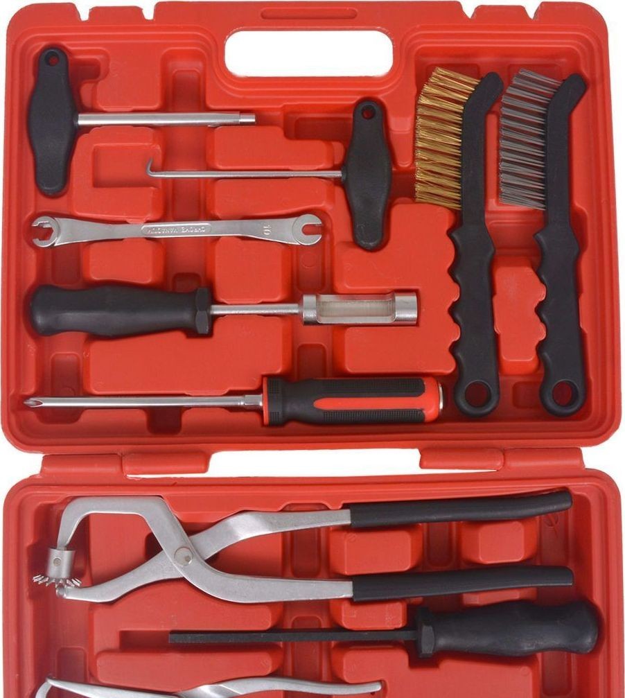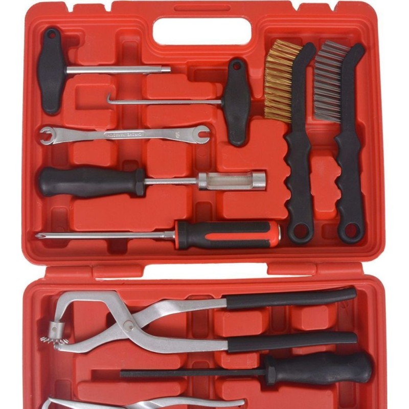Das 15-teilige Werkzeugset für die Reparatur und Montage von Bremsen enthält alles, was Sie für die einfache und effiziente Arbeit an Trommel- und Scheibenbremsen benötigen.